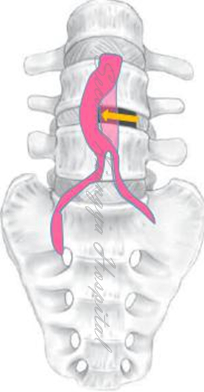 4.L4/5及以上节段,用常规腹部拉钩将将腹主动脉和静脉向内侧牵开,但不用过中线;