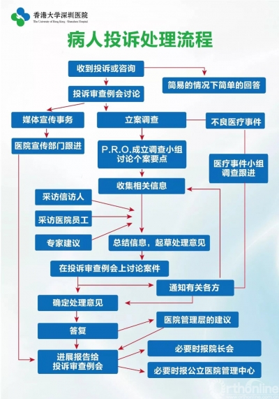此外,医院每周还会召开由医疗服务副院长或授权助理院长主持的投诉审查例会,审核每一宗投诉或意见,医院分管的助理院长每周还会抽出2个多小时逐个分析,和各个部门一起商讨改进措施。