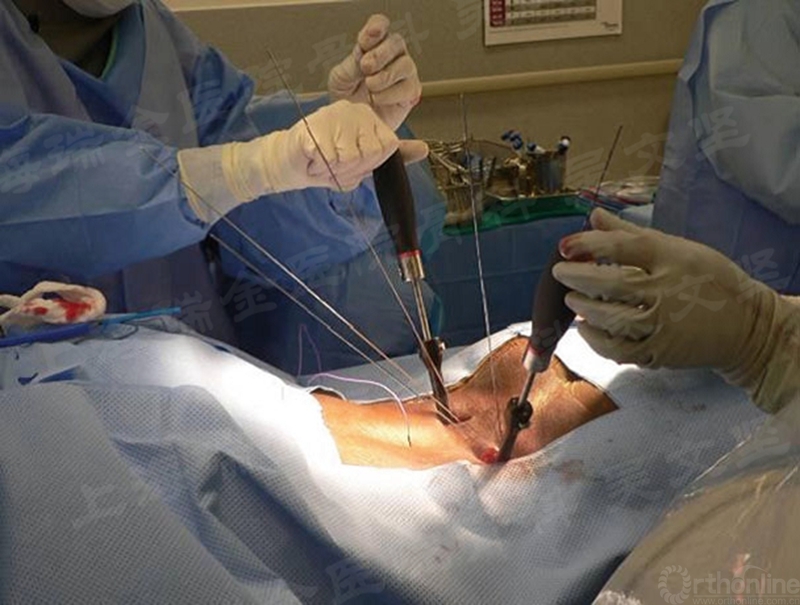 a) 切口不宜过小。一般每个螺钉的切口应该在1.5cm左右,切口过小可能会导致皮肤和其他软组织的卷入和捻挫,增加软组织的损伤。