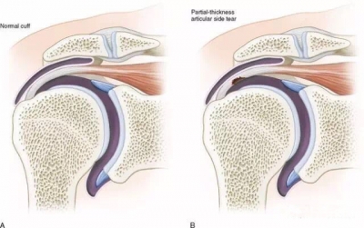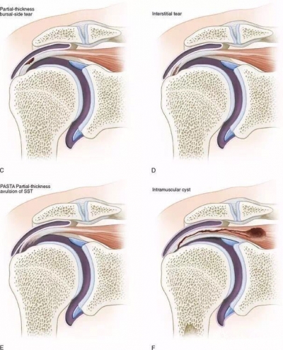 E,关节侧肩袖部分撕裂(PASTA病变)