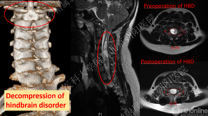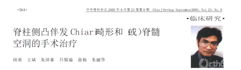 2003年邱勇教授团队在《中华骨科杂志》发表了他们的研究。该研究选取了52例Chiari畸形和/或伴有脊髓空洞的侧凸患者,对其手术治疗方法进行回顾性对照研究,得出的结论是Chiari畸形1型患者伴或不伴有脊髓空洞,无论是否合并神经功能障碍,建议术前先行牵引2周,牵引没有神经功能症状表现后可以一期行脊柱侧凸矫形手术;而Chiari畸形1型患者无论是否合并脊髓空洞,只要有神经功能异常,或者无论是否有神经功能障碍的Chiari畸形2型患者,都建议先行神经外科干预(后颅窝减压术、脊髓空洞分流术等)后6个月再进行脊柱侧凸的三维矫形。