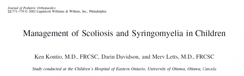 Mackinoon团队的较早关于侧凸合并空洞手术治疗的研究报道
