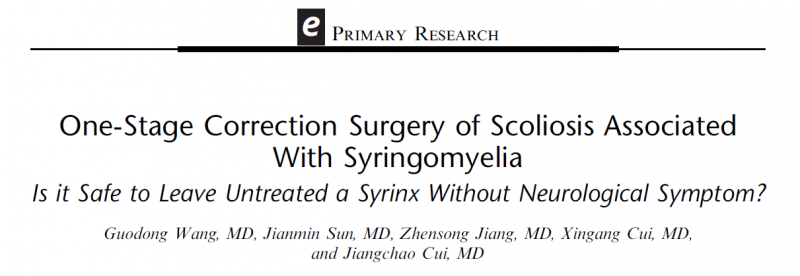 而这一研究也引起国内外一些专家团队对于一期矫形脊柱侧凸这一治疗方案的思考。他们分别于European Spine Journal、Journal of Spinal Disorder & Techniques等杂志上发表了对于术前没有明显神经功能障碍的患者进行一期侧凸矫形的研究,并得出在术中神经监测(IOM)以及唤醒实验的基础上,术前没有明显神经功能异常的侧凸合并空洞患者,优先进行神经外科的干预可能是没有必要的结论。
