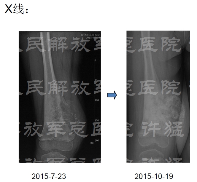治疗:通过大剂量的甲氨蝶呤、多柔比星和环磷酰胺方案化疗后,患者缓解良好,成功实施旋转成形术。