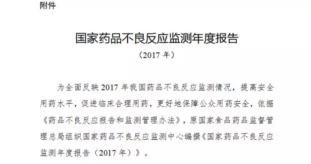 4月13日,国家药监局发布《国家药品不良反应监测年度报告(2017)》(以下简称《报告》)。