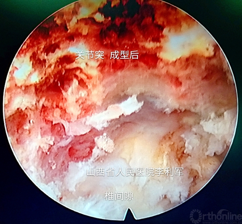李利军 #2针对各位主任说的镜下迷路的问题,我个人经验是这样的,我习惯反拿镜子,通道下去先找到背侧的关节突关节,向腹侧倾斜通道找到椎间隙及上位椎体下缘,下位椎体上缘,把这些结构做位镜下解剖标志,如果向远端就可以见到椎弓根上缘,这样以这些标志为参照物,就不会迷路,也基本判断好了关节突成型范围,至于成型多少,根据减压部位决定,如果主要减压腹侧,关节突成型少点,如果需要减压背侧,就多成型,如果减压远端,就近端多去除,减压近端,远端多去除点,根据是否阻挡通道而决定。