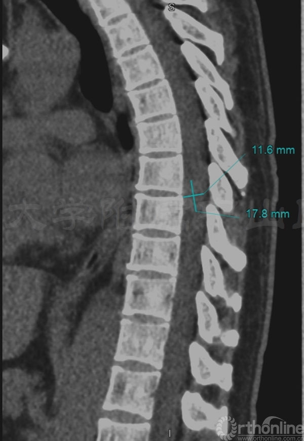 术后三个月患者腰背痛完全缓解,肌力已恢复至5级,下肢麻木感消失。CT显示:椎板截骨面已骨性愈合,无移位,椎管容积与术前无明显差异