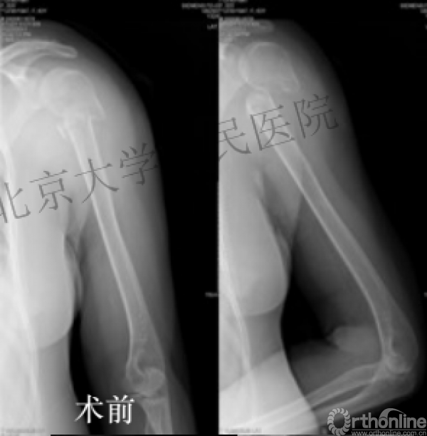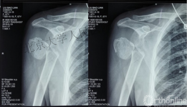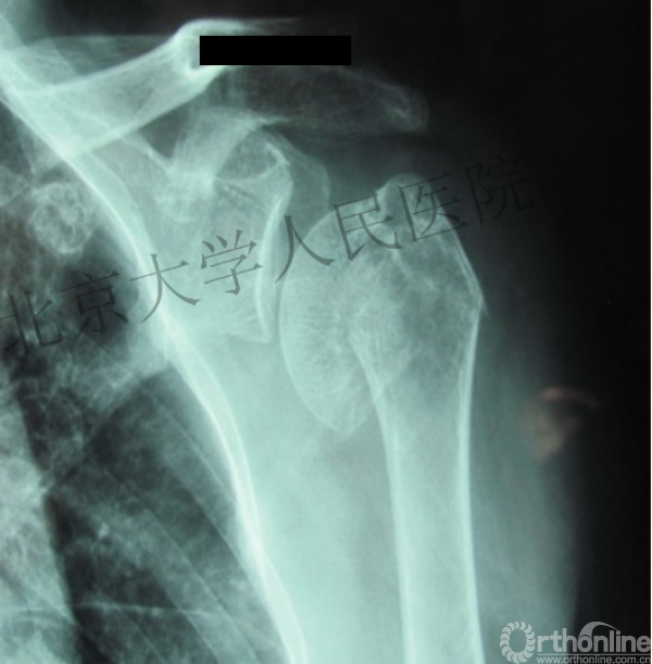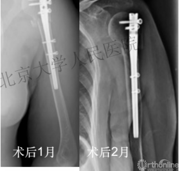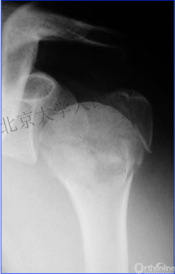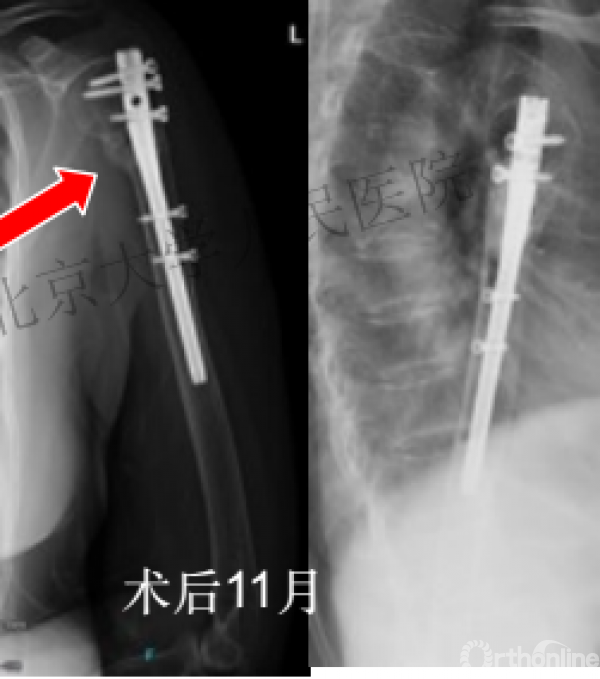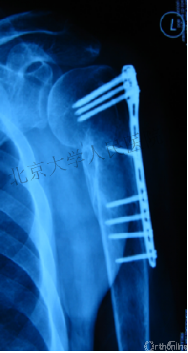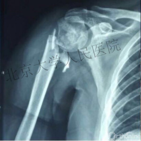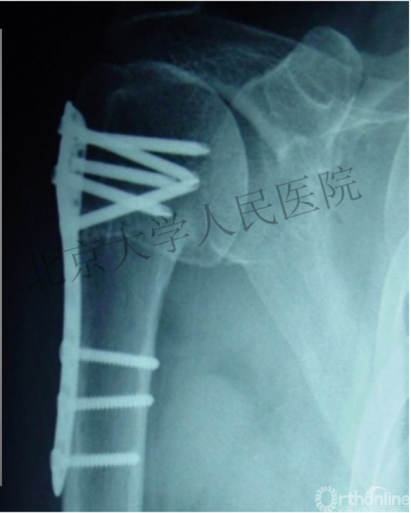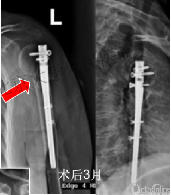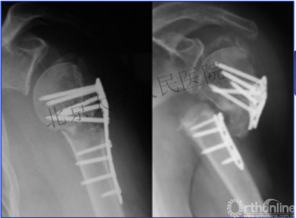 术后3月随访:继发性颈干角变小22°(5-82),肱骨头内翻,达46%
