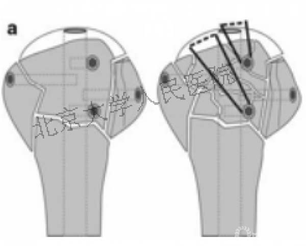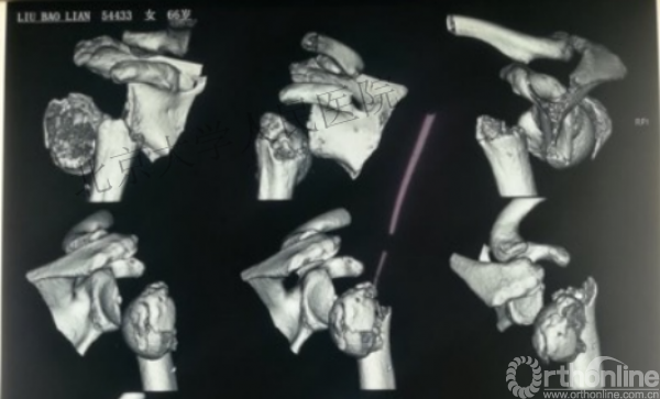 内侧皮质粉碎,低位外科颈骨折,肱骨头-干角维持困难。