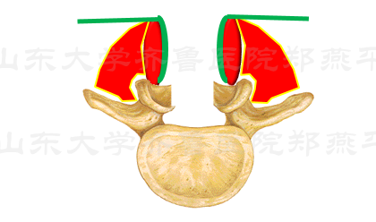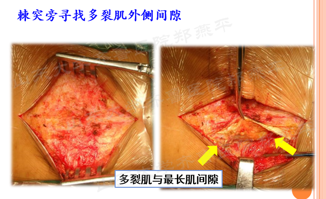 (2)腰背筋膜下寻找多裂肌外侧间隙,钝性分离间隙到达关节突。