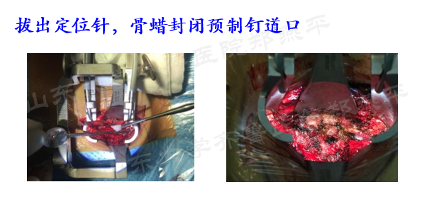 (6)拔出定位针,骨蜡封闭预制钉道口。
