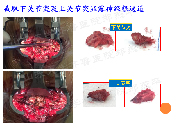 (7)清理关节突周围软组织,截骨刀截取下关节突及上关节突显露神经根通道。