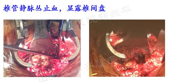 (9)双极电凝对椎管静脉丛止血,显露椎间盘。