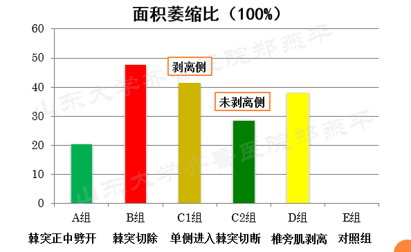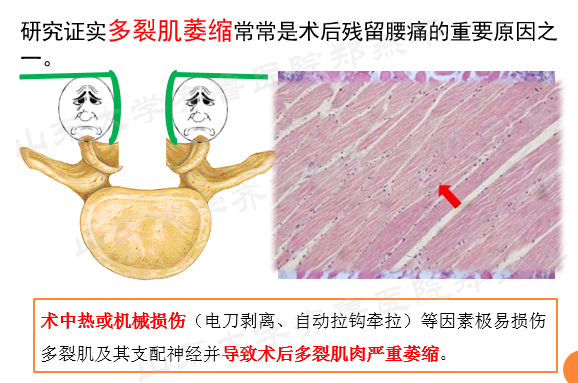 肌肉萎缩程度影响因素主要包括牵开时间、剥离范围、脊神经后根中间支的机械性牵拉及热损伤程度、肌肉动脉血供损伤程度及术后制动等有关。