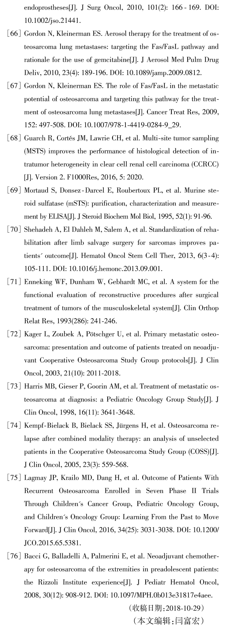 2019-02-13 文章来源:中华骨科杂志2019年1月第39卷第1期Chin J Orthop, January 2019, Vol. 39, No 作者:中华医学会骨科学分会骨肿瘤学组 我要说