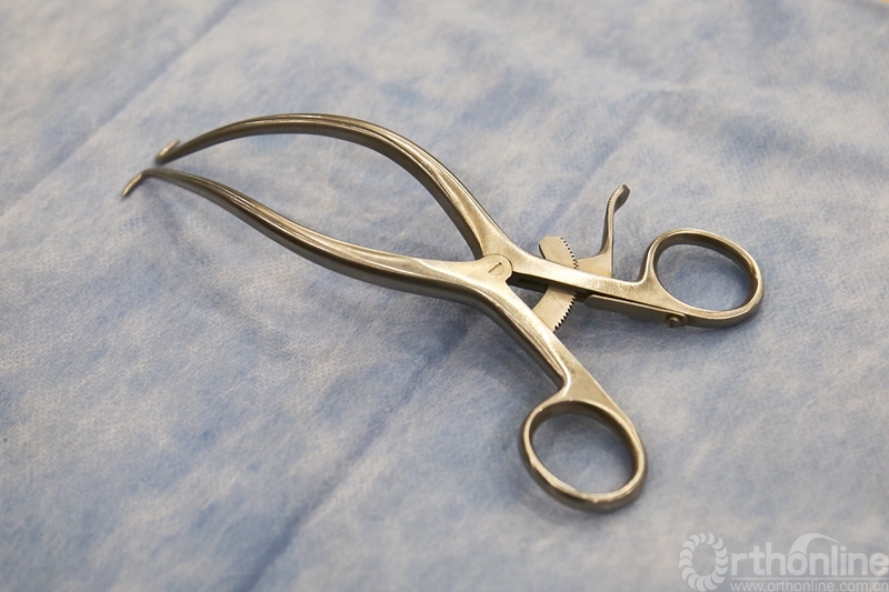 c) 髓核钳插进椎间隙后就打开其咬口,这样可获得更大的阻力阻挡髓核钳在椎间隙内插入过深;
