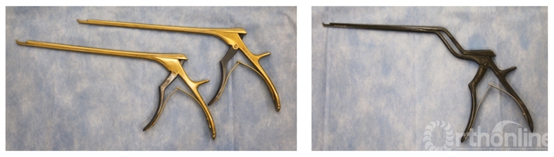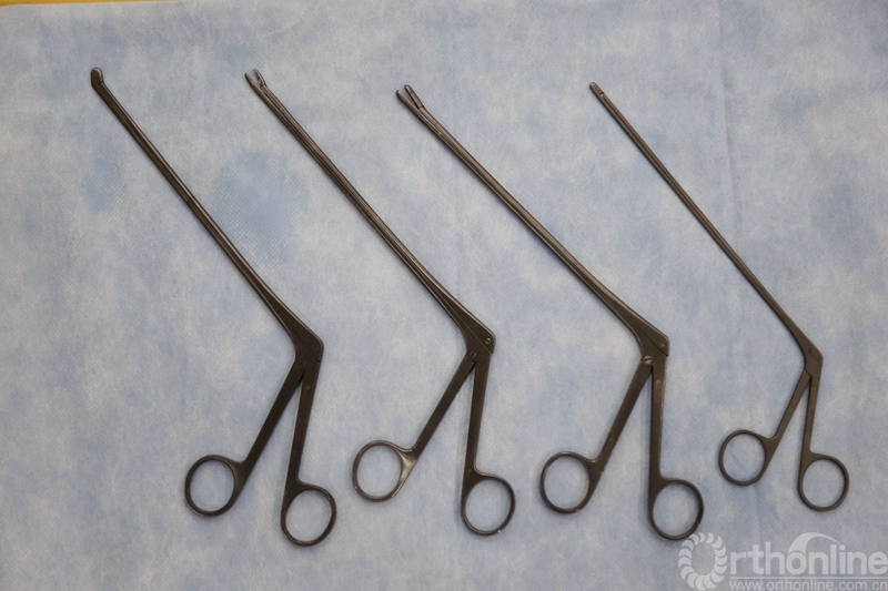 髓核钳的杆要足够长,这样才能深入到狭小的微创外科切口内。
