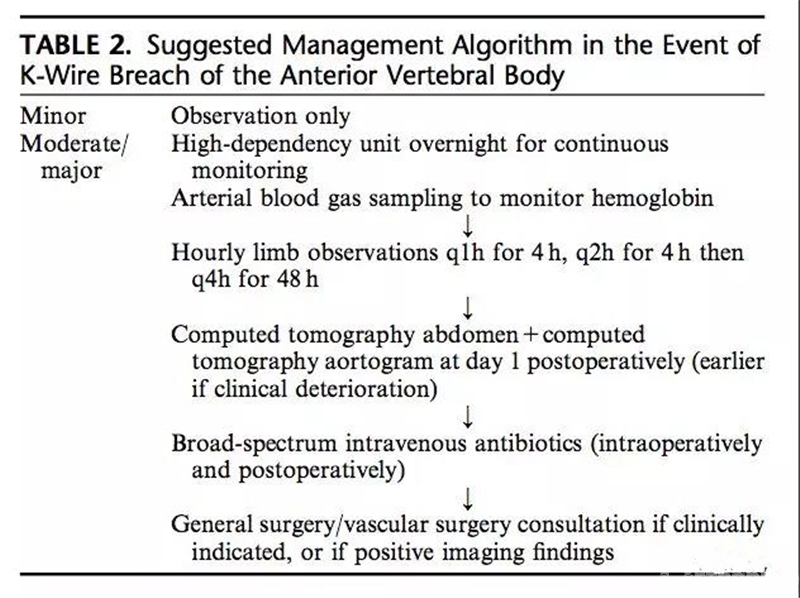 克氏针向前穿出小于 5mm 为轻度,穿出 5-25mm 为中度,穿出大于 25mm 为严重。