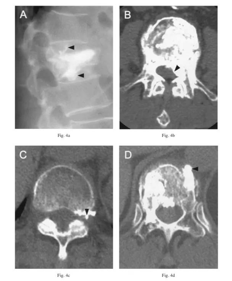 术中打骨水泥时多问问患者,如果出现不适,哪怕C臂看着没问题,也赶紧停下来,安全第一。说不定已经漏到神经周围了只是C臂没看出来。术后及时复查三维CT。