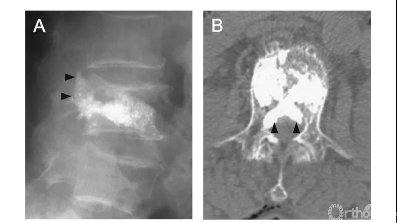 PKP/PVP会发生骨水泥渗漏,漏在椎体外围或者椎间盘也许没什么事。如果漏入椎管或者椎间孔区域,可能造成神经症状。漏入静脉,可能肺栓塞。
