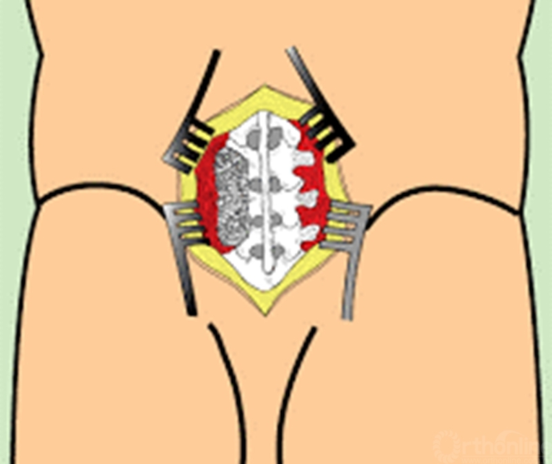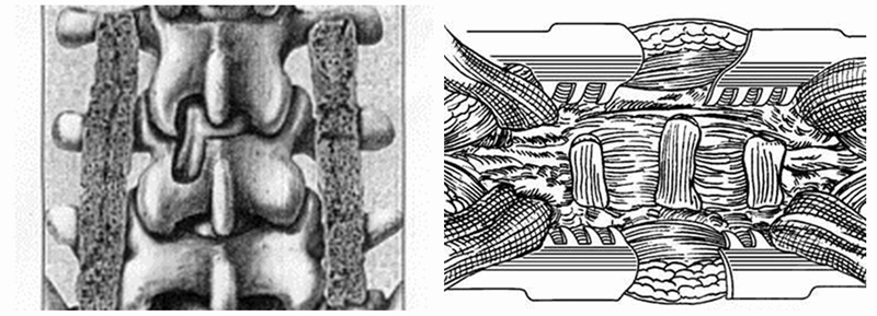3、维持软组织的支持作用。植骨块植入后在横突间隙不能有发生移位的空间,必须保持在原位固定,为达到这一点,可以将脊柱节段固定(椎弓根螺钉)或形成非常紧张的软组织封套植骨床,我们一般采取后一种方法;