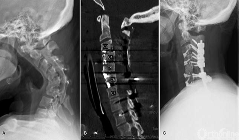 为矫正颈椎畸形,通常需要前路和/或后路截骨术。前入路有利于安全的神经减压;随着前凸型cage和可扩张型cage的出现,前路矫形更加安全方便。对于严重的固定畸形和骨质较差的患者,单纯前路固定强度不足,需增加后路固定。后路固定到上胸椎可进一步加强稳定,并预防迟发性颈胸椎畸形。