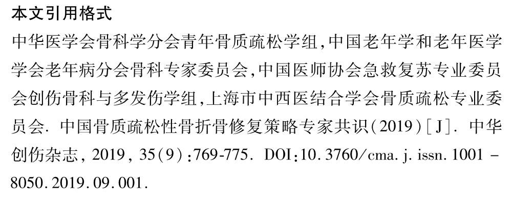 中国骨质疏松性骨折骨修复策略专家共识(2019)