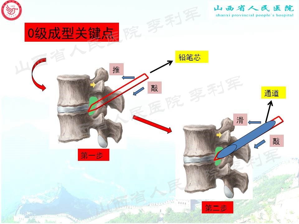 山西省人民医院骨科李利军医生根据自己的临床经验体会发现根据术前的影像、临床症状体征、手术需要减压的范围及术中的操作情况,在保证良好减压的情况下可以做到分级成型,进一步体现了微创手术的微创化理念,并根据这些经验体会总结出PTED按需成型5级法,因为属于初步体会,不足之处很多,希望得到各位老师及同道的批评指导。