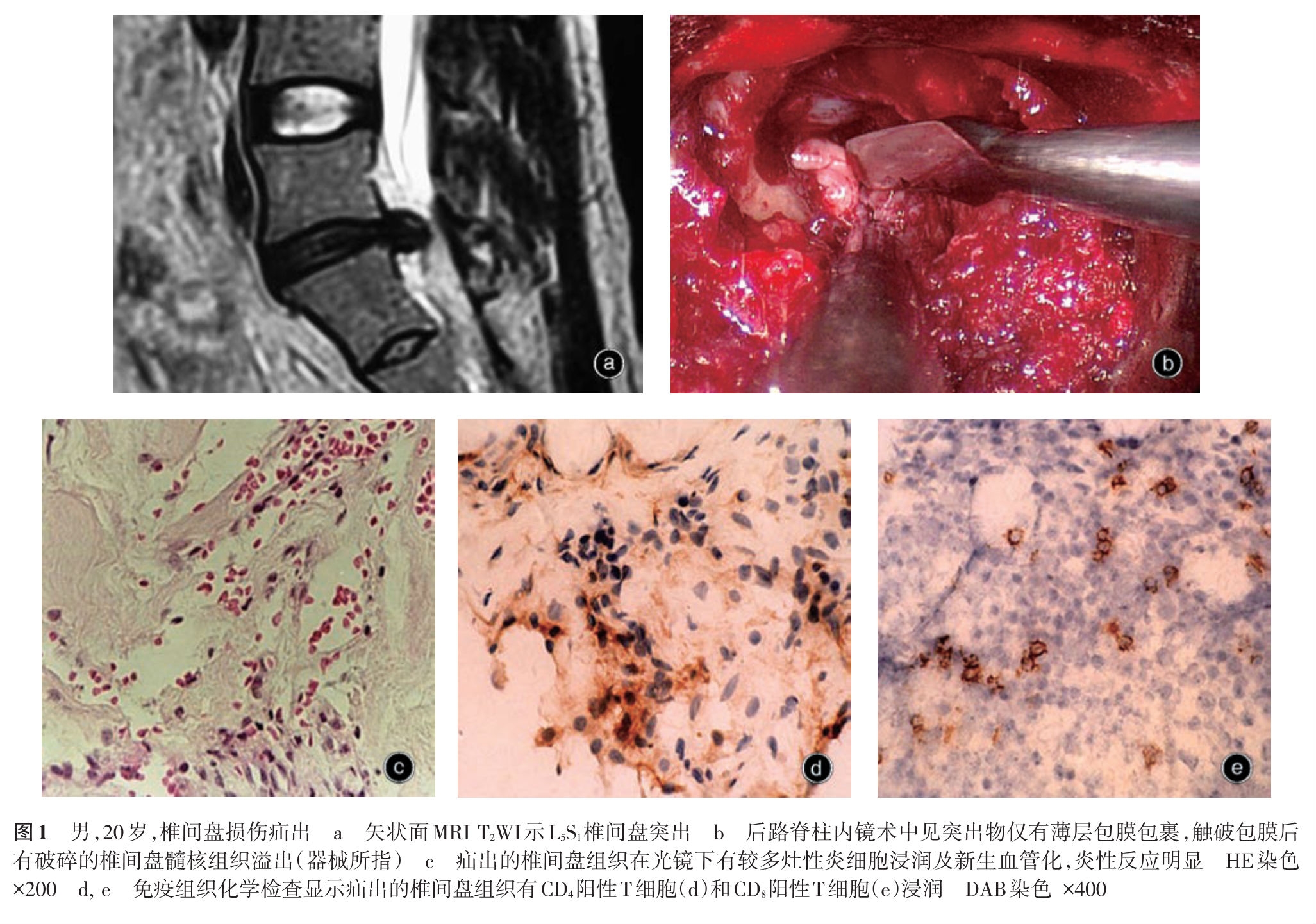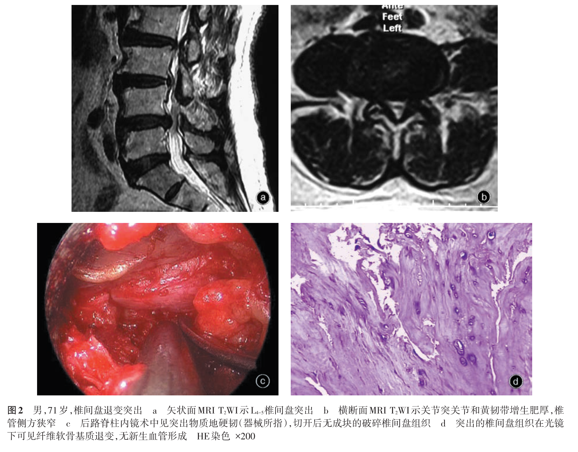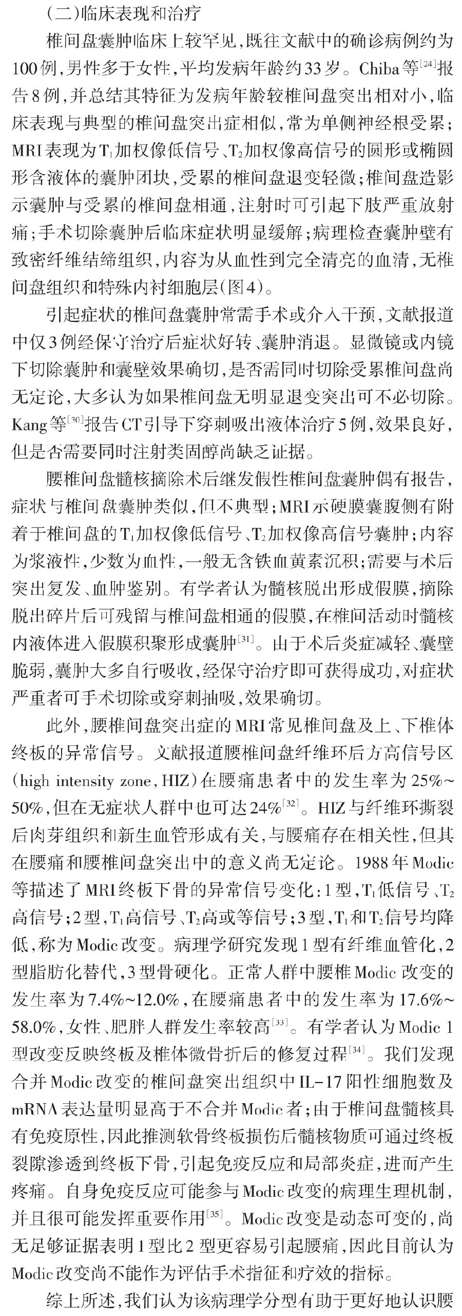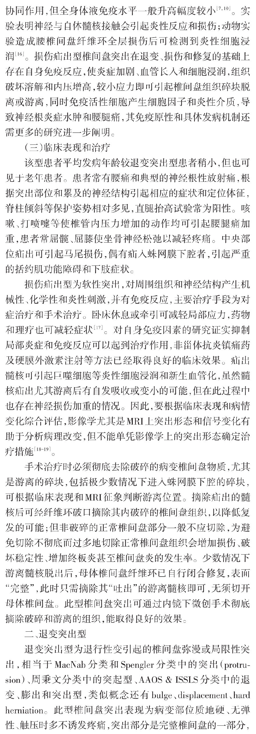 腰椎间盘突出症是骨科常见病及多发病,其病因包括内源性因素(遗传、发育、退变)和外源性因素(应力、营养、劳损、外伤等),但具体发病机制尚未完全阐明。腰椎间盘突出是描述形态学的术语,其分类大多也是基于影像学上的突出部位和形态。但临床症状的性质和轻重并不完全取决于突出形态,还与椎间盘突出的病理学变化密切相关。因此,腰椎间盘突出症的分型不应拘泥于影像学分型,而要考虑不同的病理变化和类型。