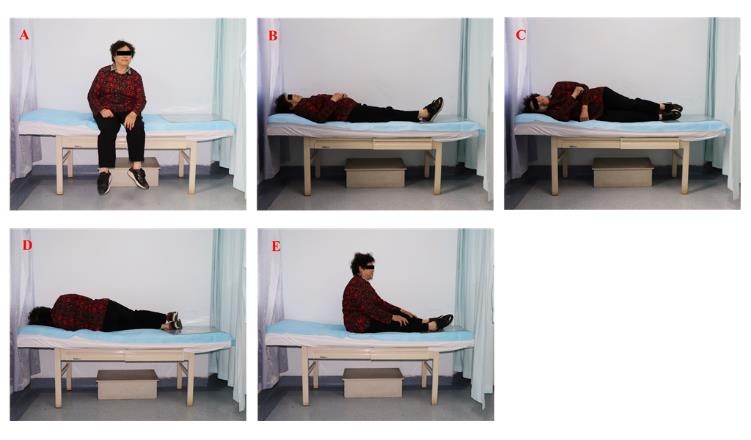 图1 翻身-起卧实验BPIT示意图:A到B为卧床动作,B到C或D为翻身动作,B到E为坐起动作