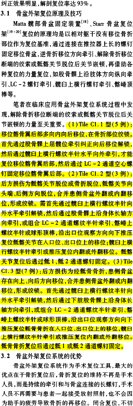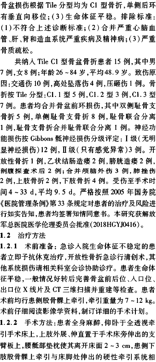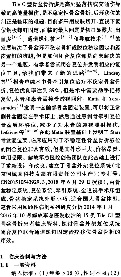 骨盆外架辅助复位联合通道螺钉固定治疗Tile C1型骨盆骨折