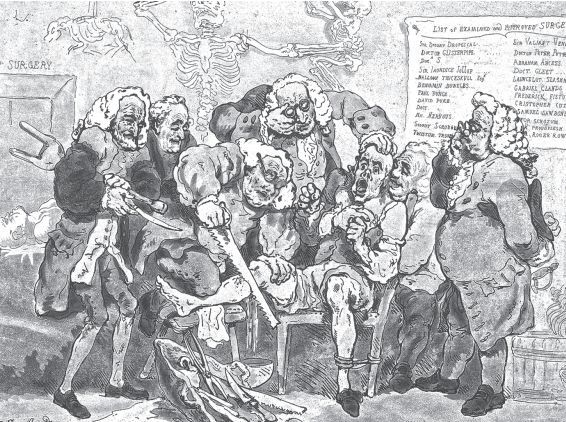 1793年的一场截肢手术(请注意病人是如何被人力和绳子约束住的)