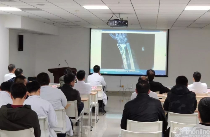 创伤骨科每周一至周早五早上7:30都会进行前一天手术的大交班,主管医生汇报病例,有专人播放患者术前与术后的影像资料,各个创伤科室主任分别从患者受伤机制,骨折AO分型,以及术后影像是否理想等方面轮流进行主持点评。