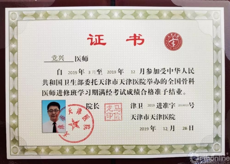 自从2019年农历己亥春节过后,我就离开医院领导同事,离开父母妻女,北上津门来到了具有“骨科届黄埔军校”的之称的天津市天津医院(又名天津市骨科医院)进修学习骨科专业知识,期间接到了许多患者的求治电话却无法面诊,也逐渐淡出了医院各位同事的视野,不少关心我的朋友和患者都对我发出了同样的疑问:“党医生,你都‘消失’快一年了,这一年你都干啥了?”
