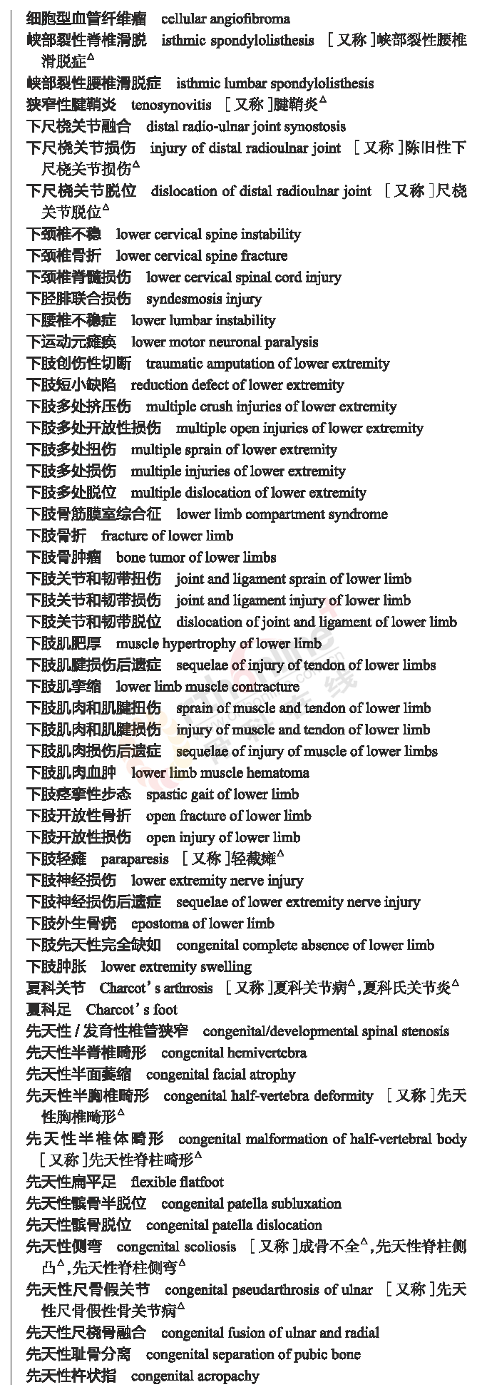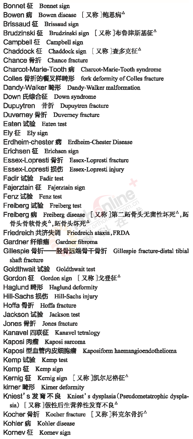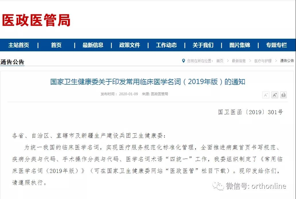 国家卫健委发布常用临床医学名词(2019年版骨科篇)