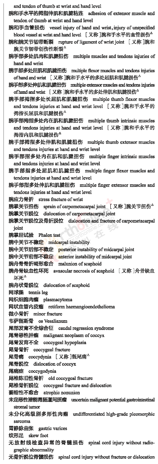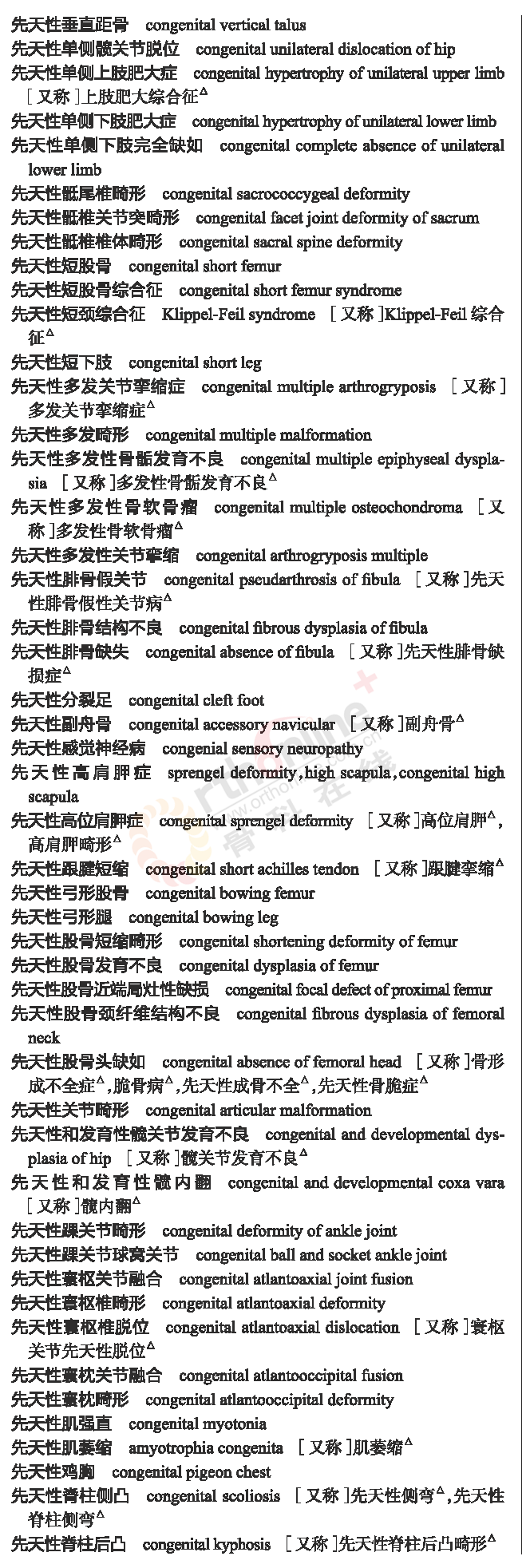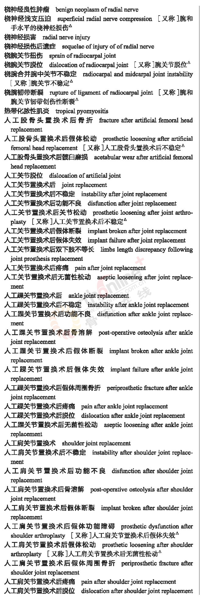 国家卫健委发布常用临床医学名词(2019年版骨科篇)