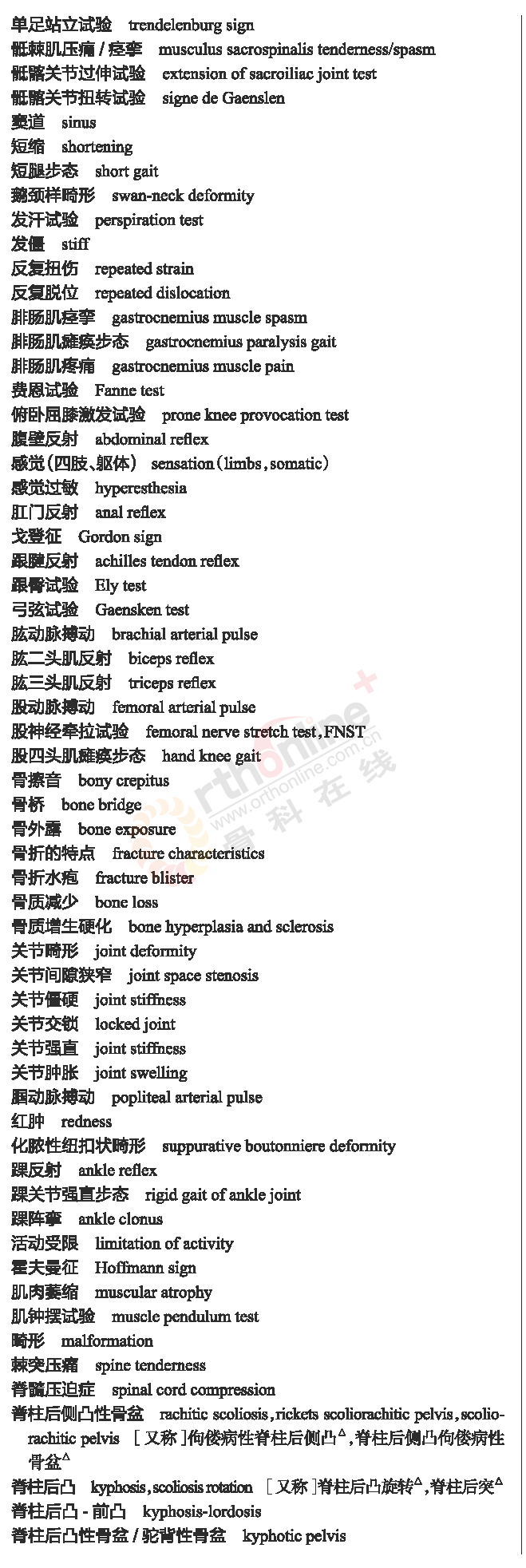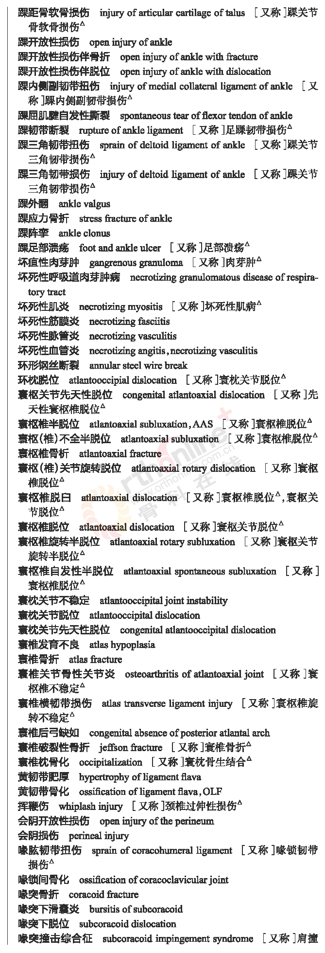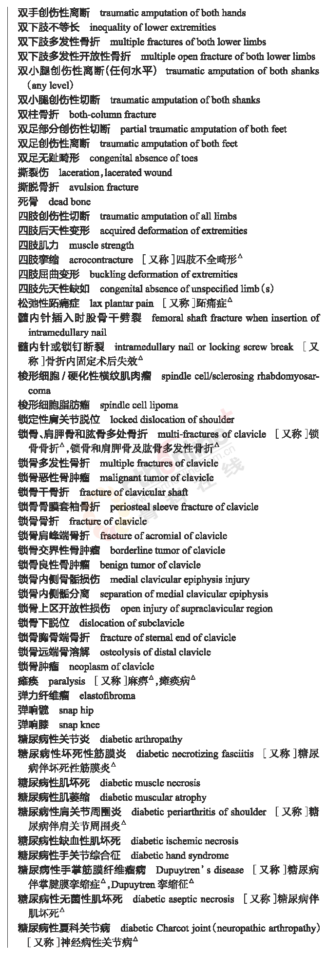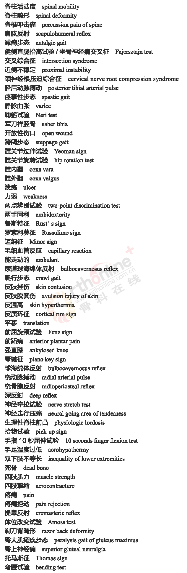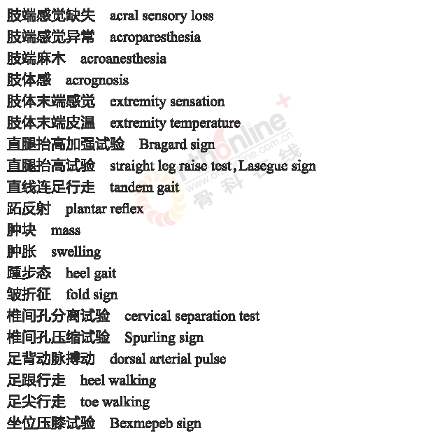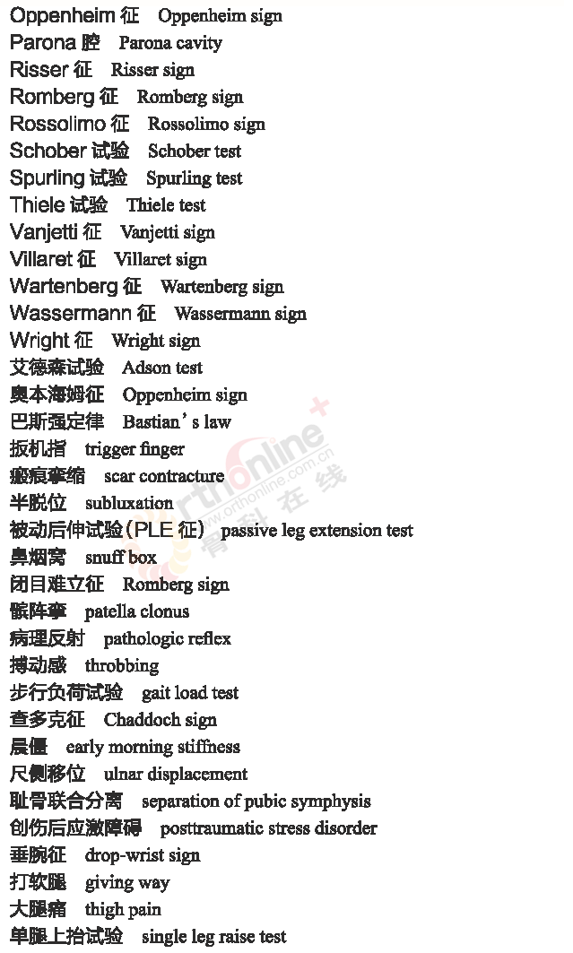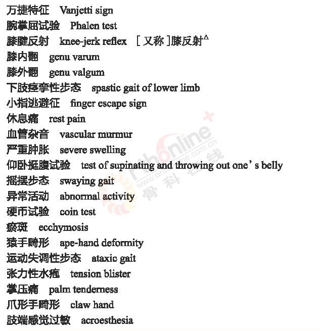 骨科常用临床医学名词
