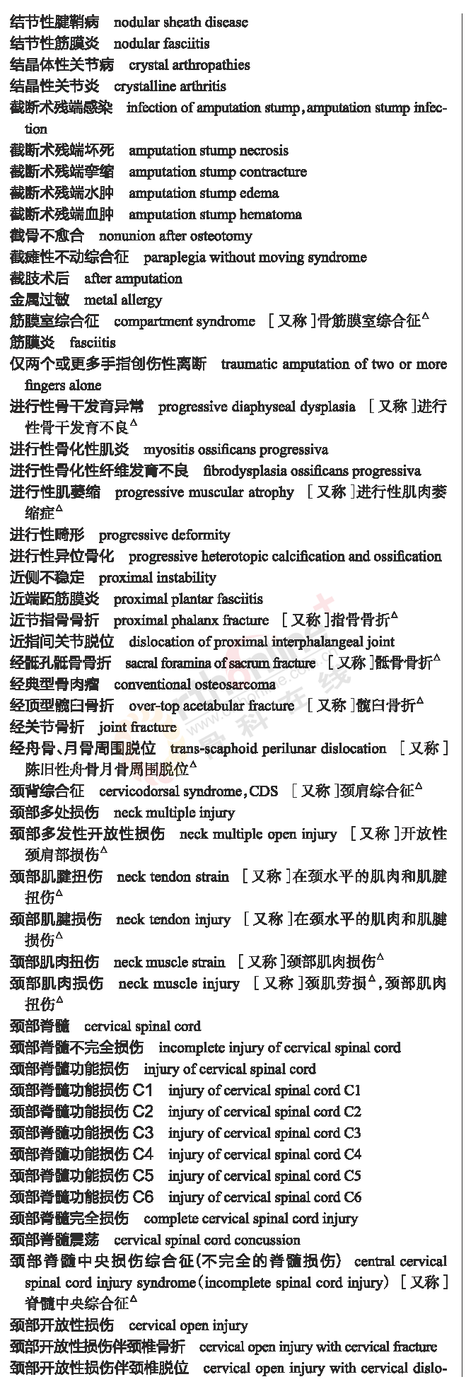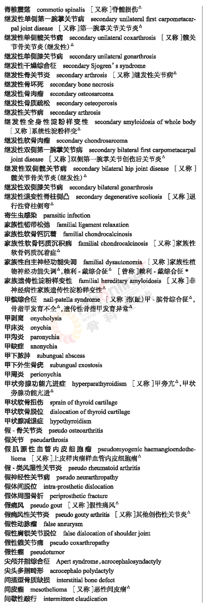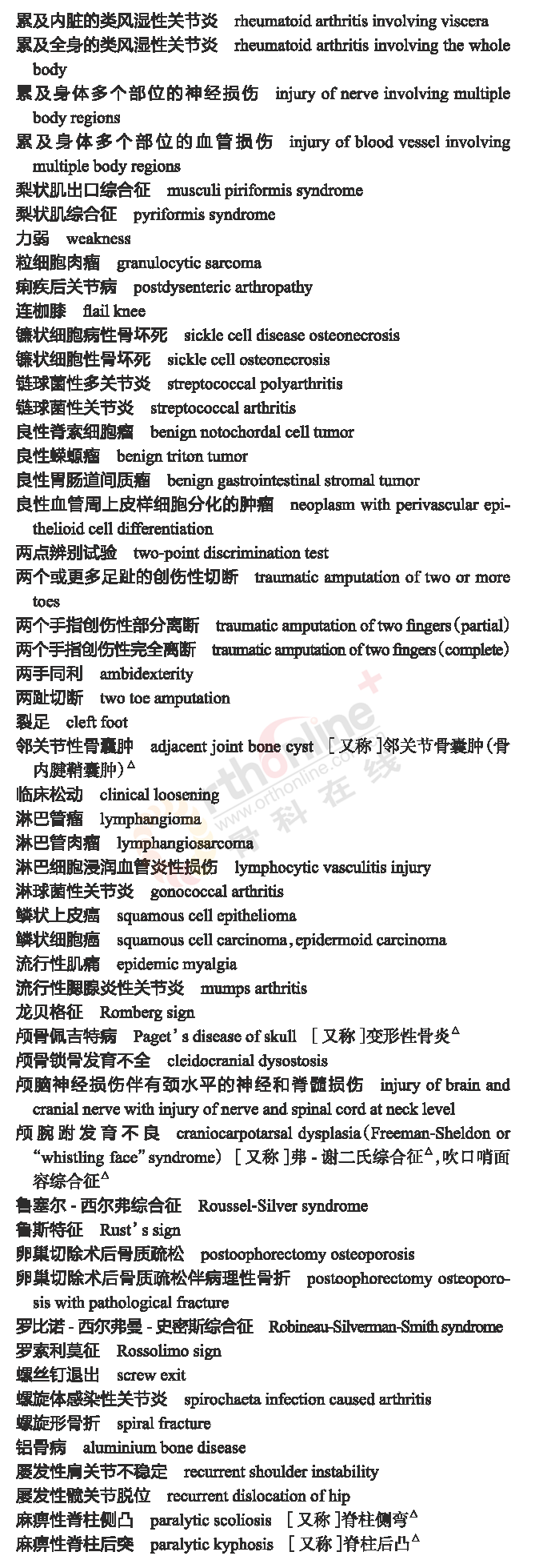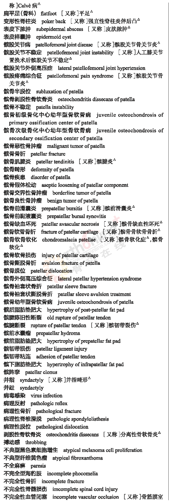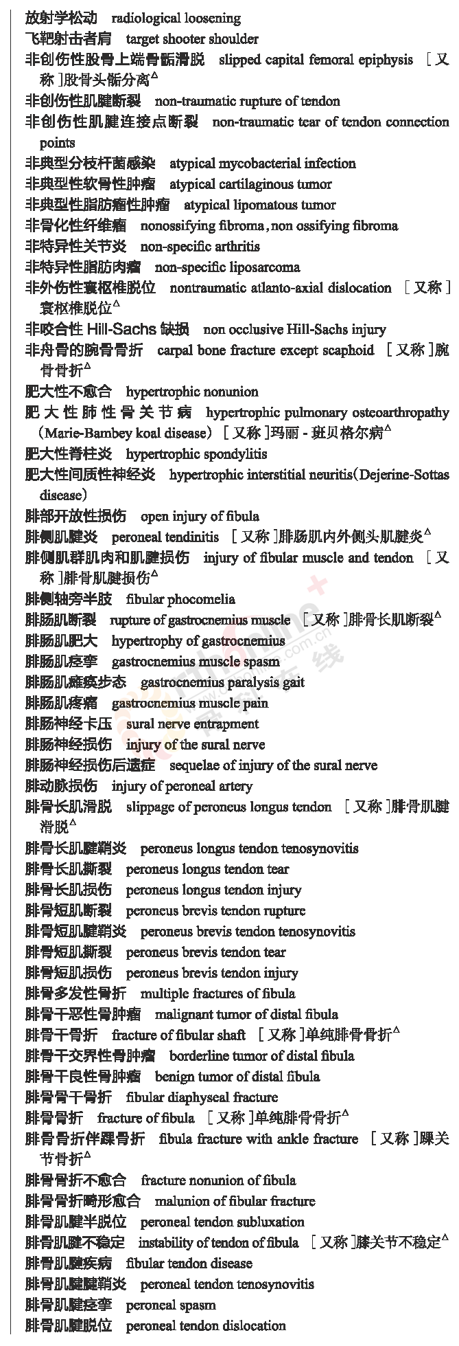 骨科常用临床医学名词