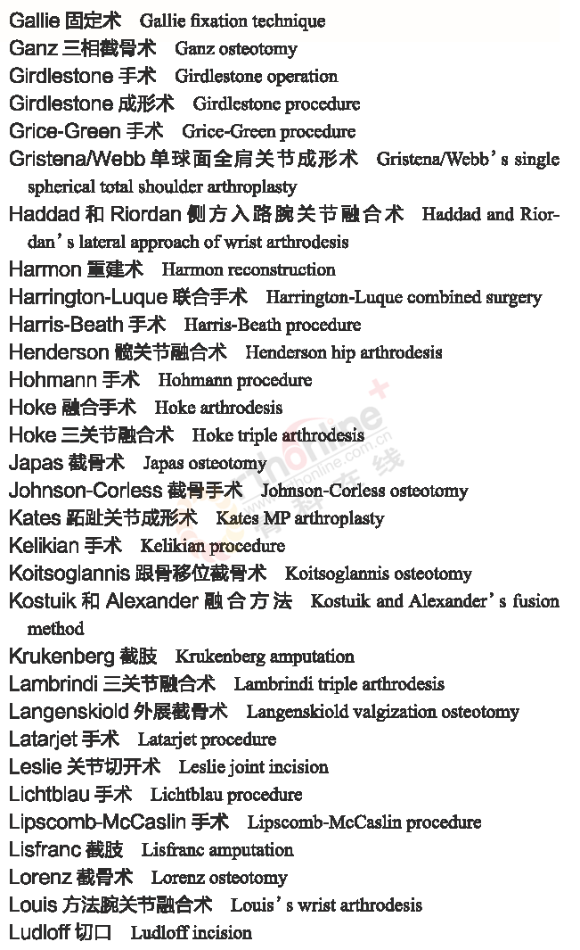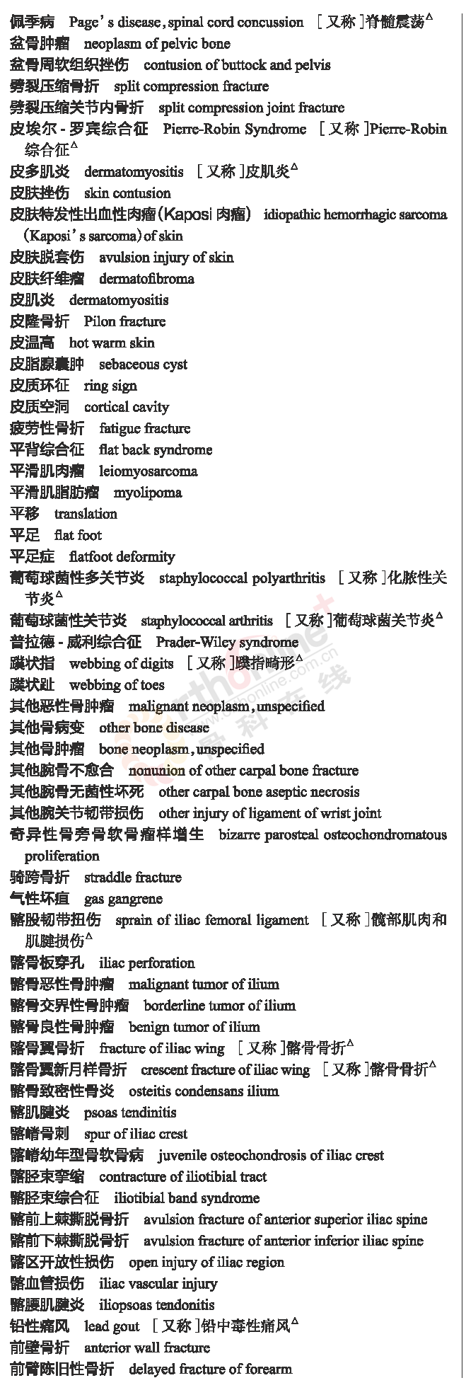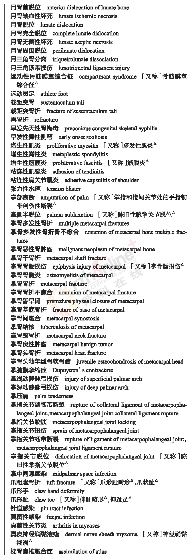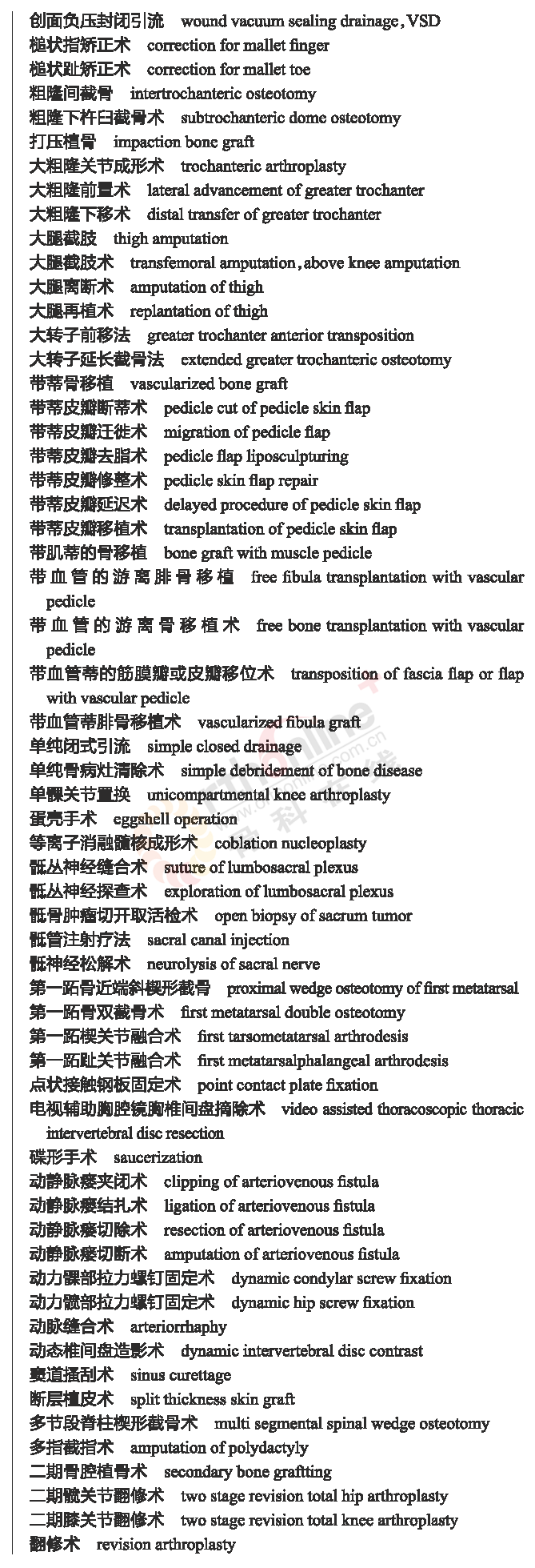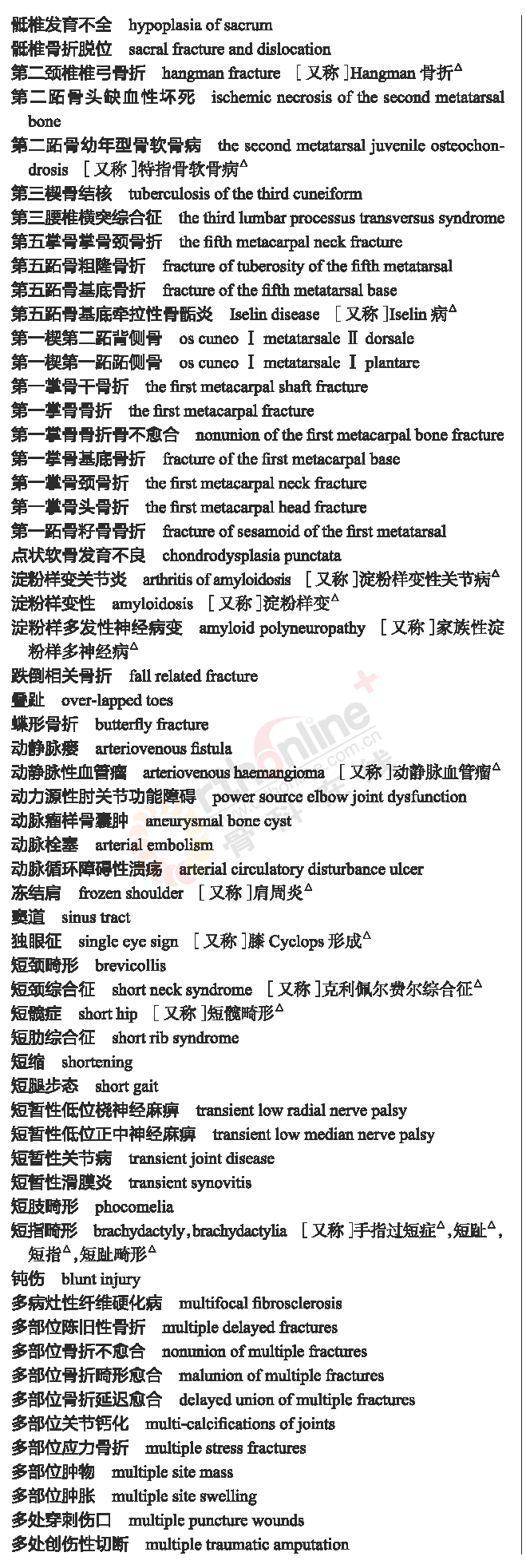 骨科常用临床医学名词