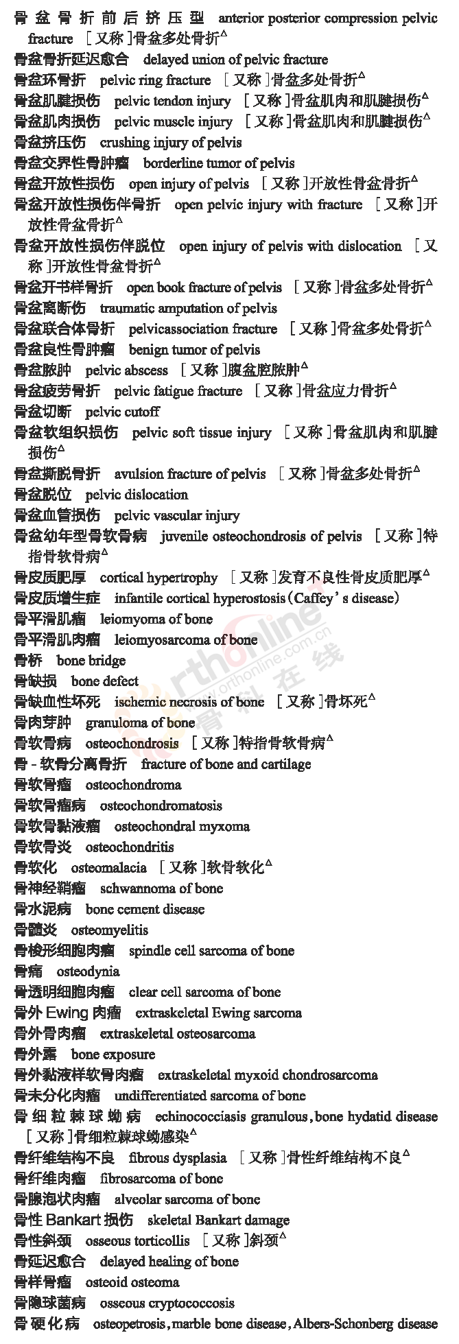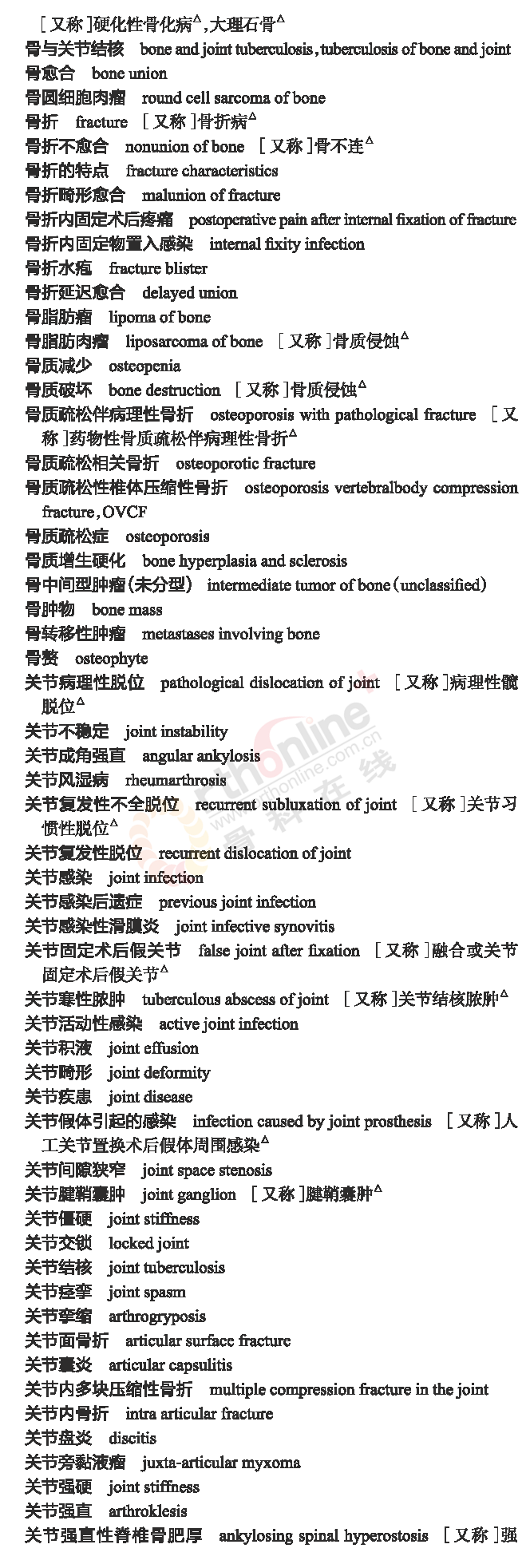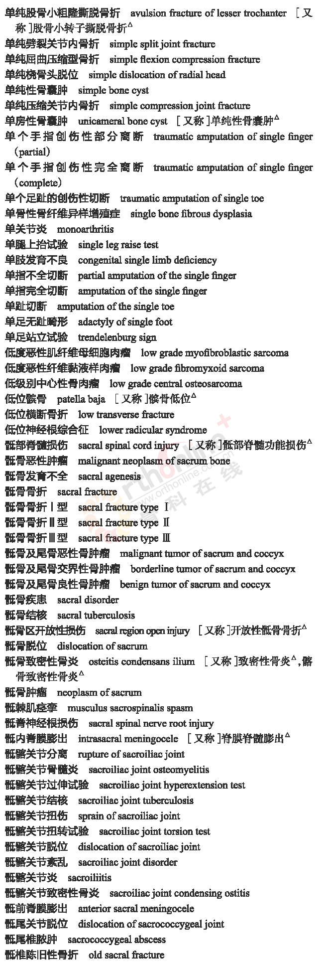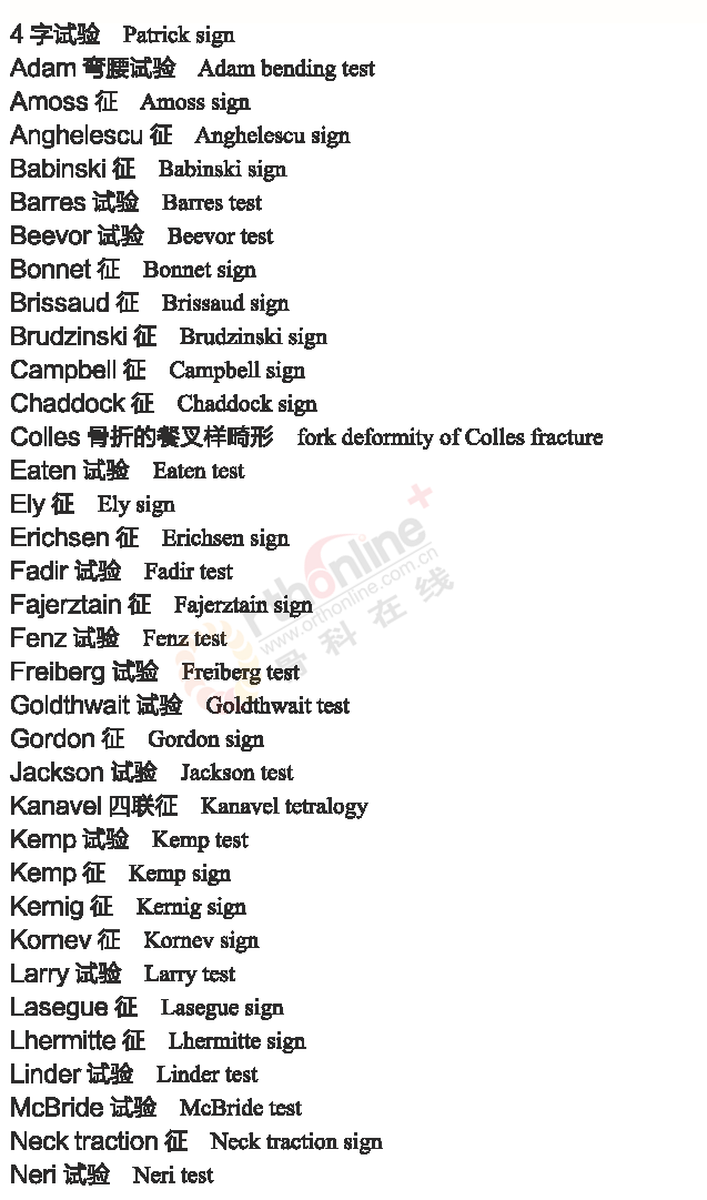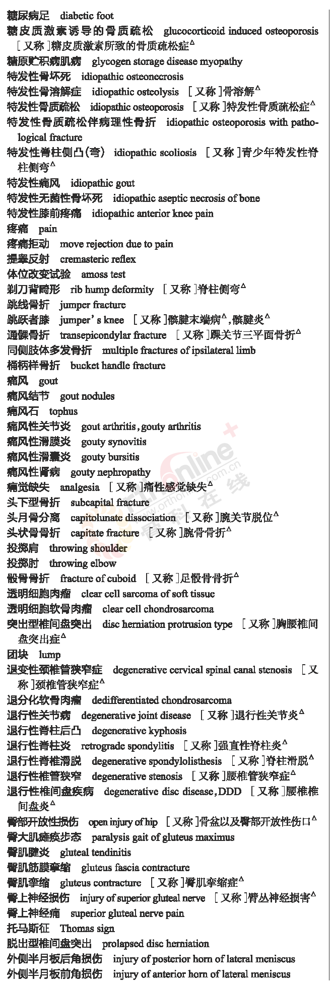 骨科常用临床医学名词