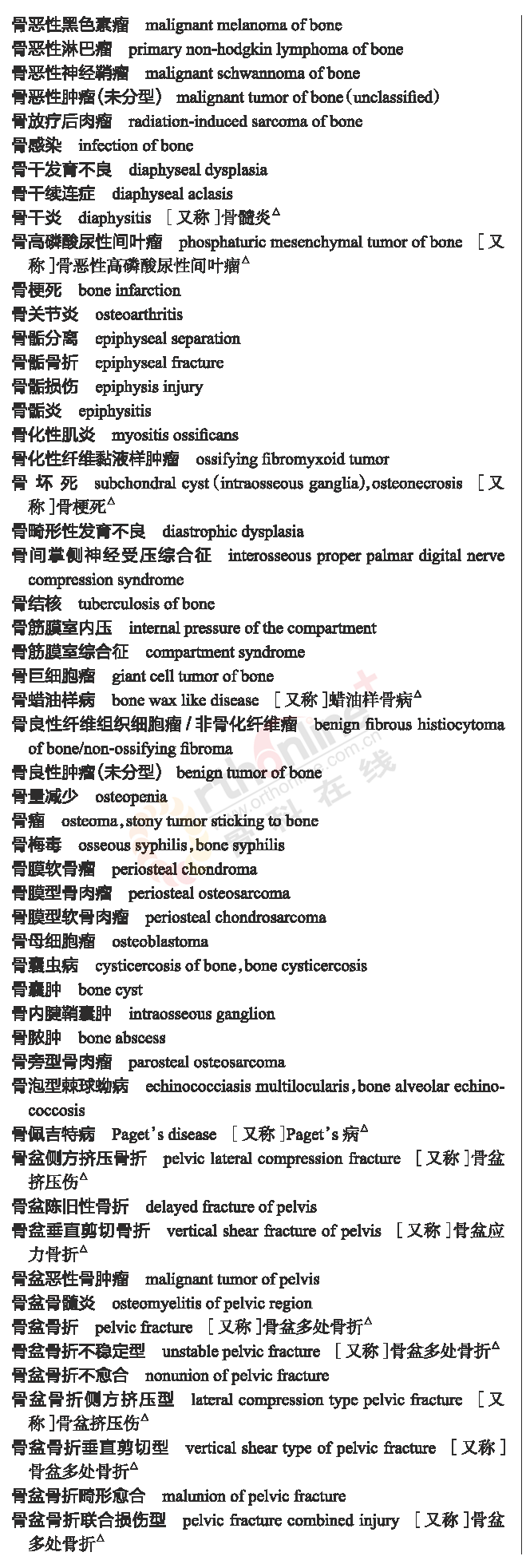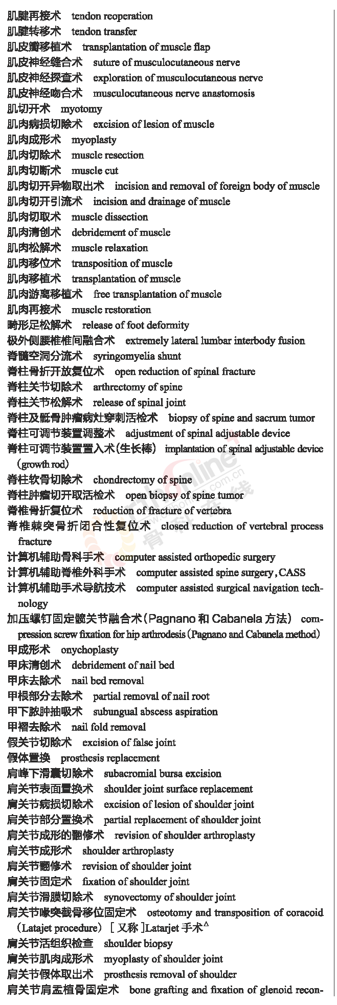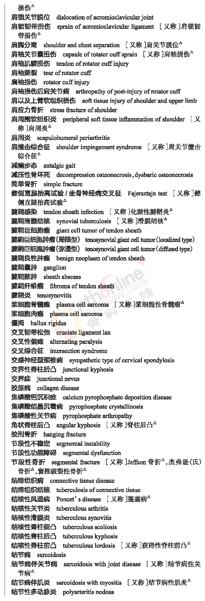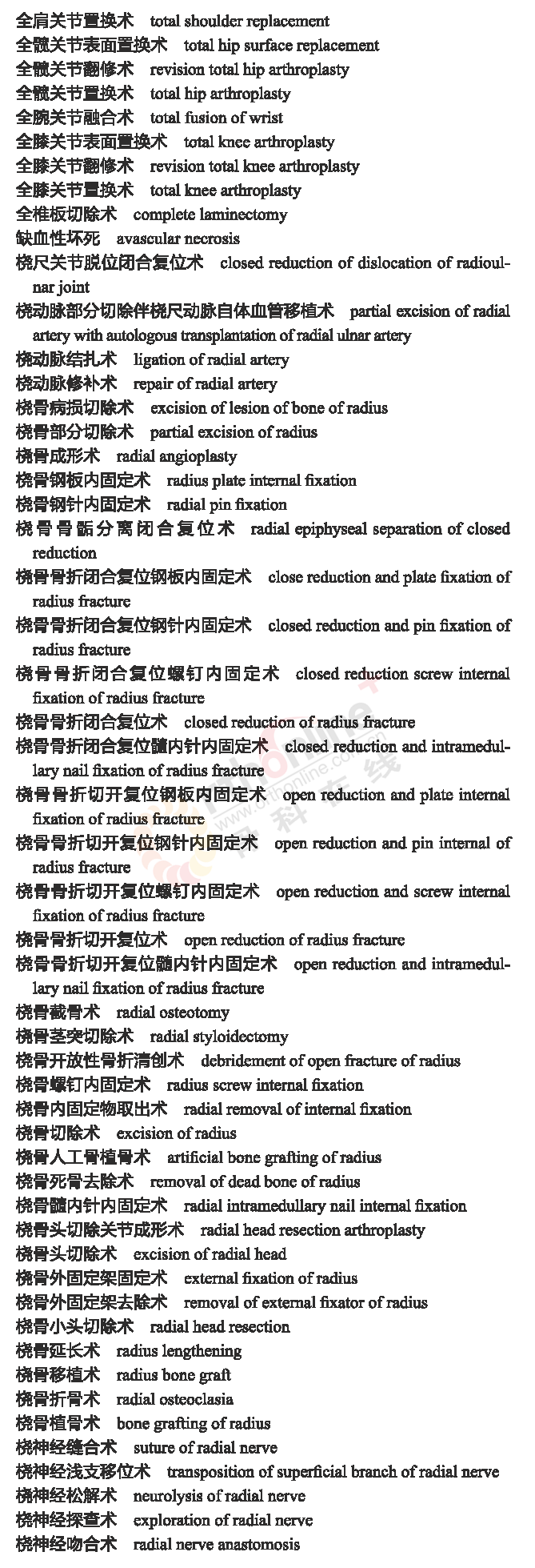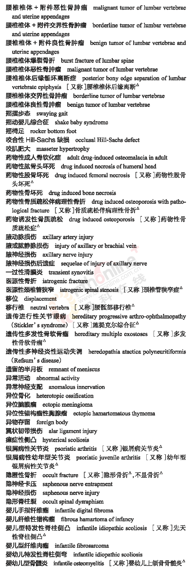 骨科常用临床医学名词