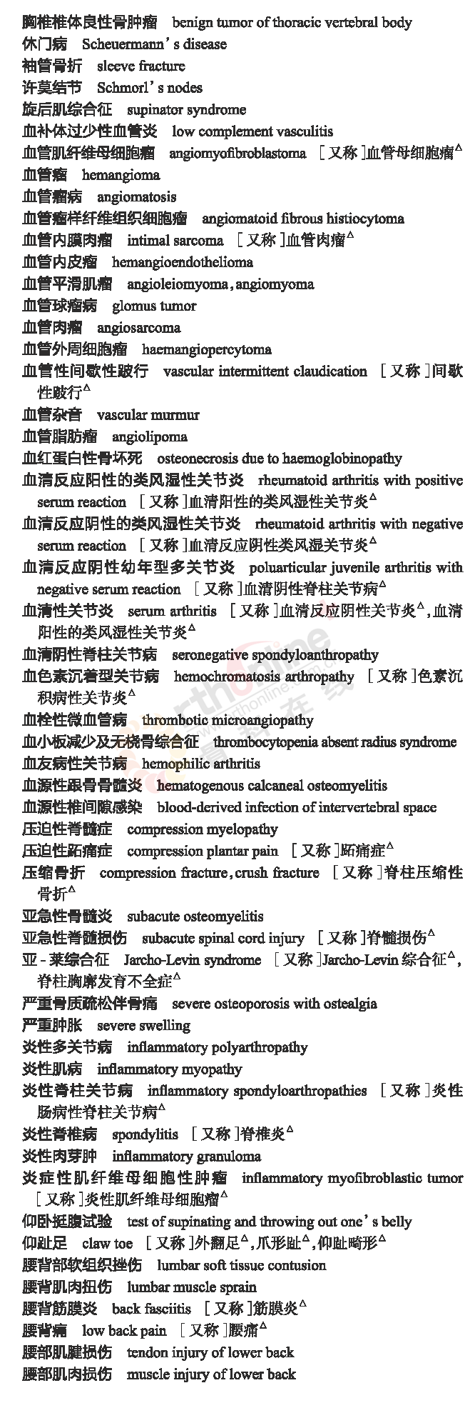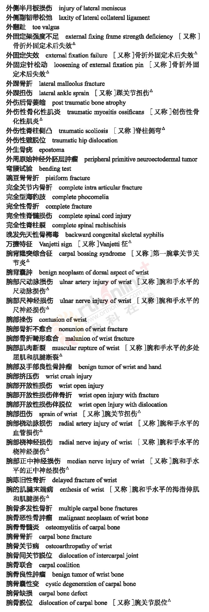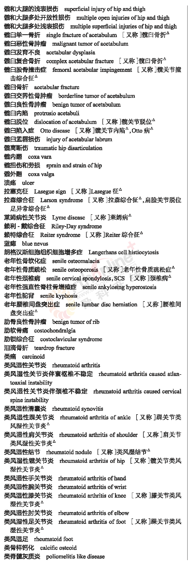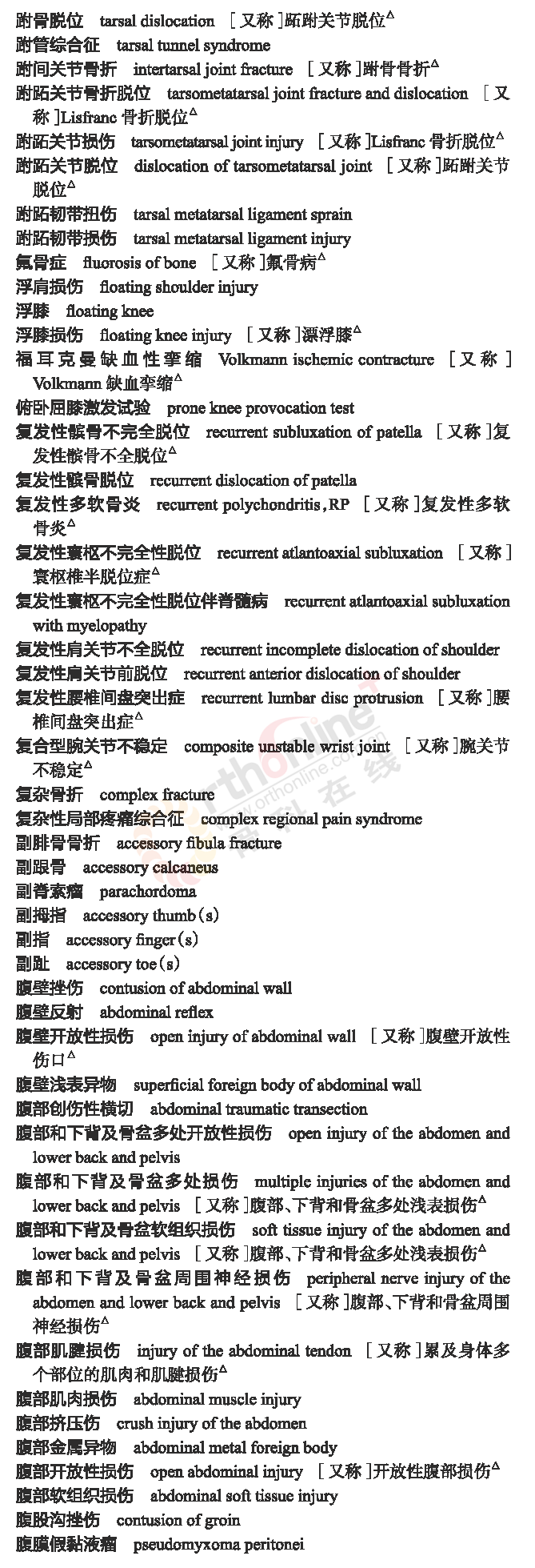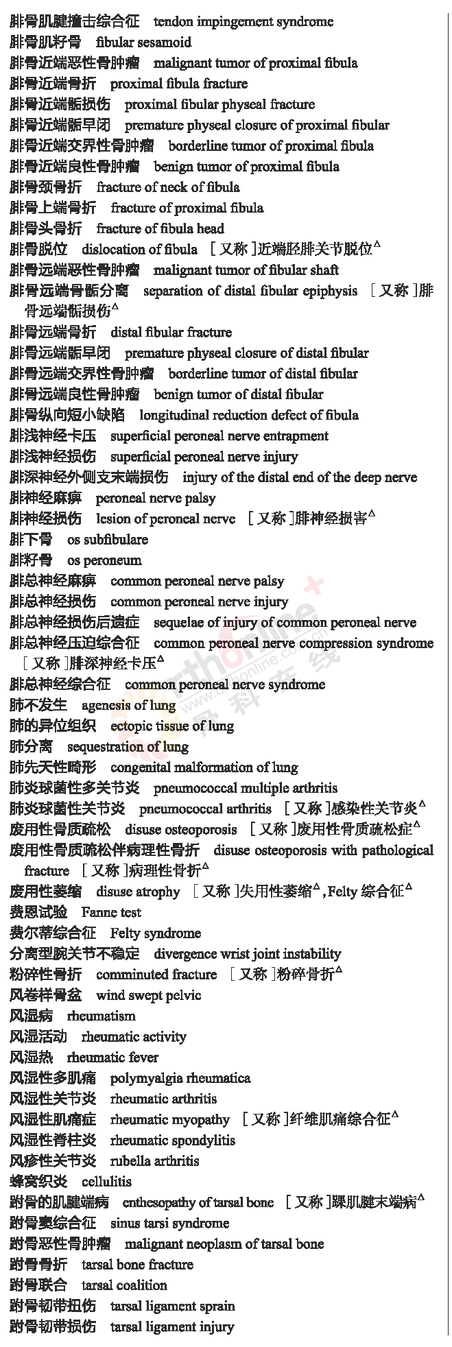 骨科常用临床医学名词