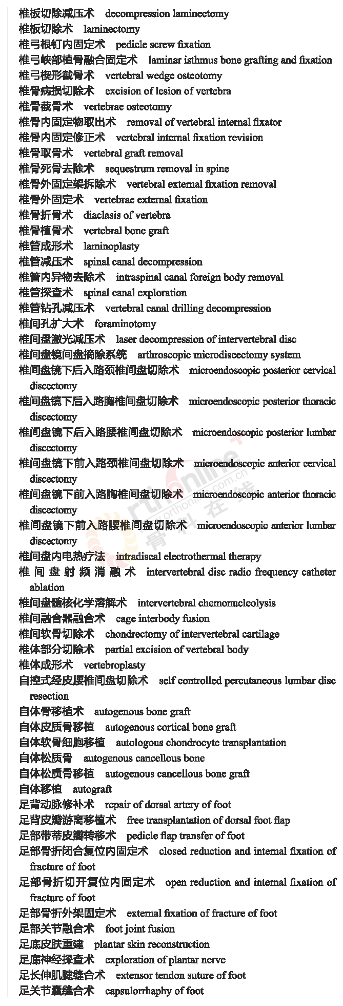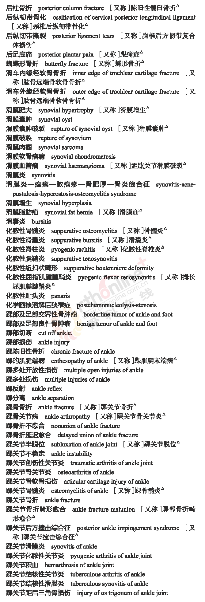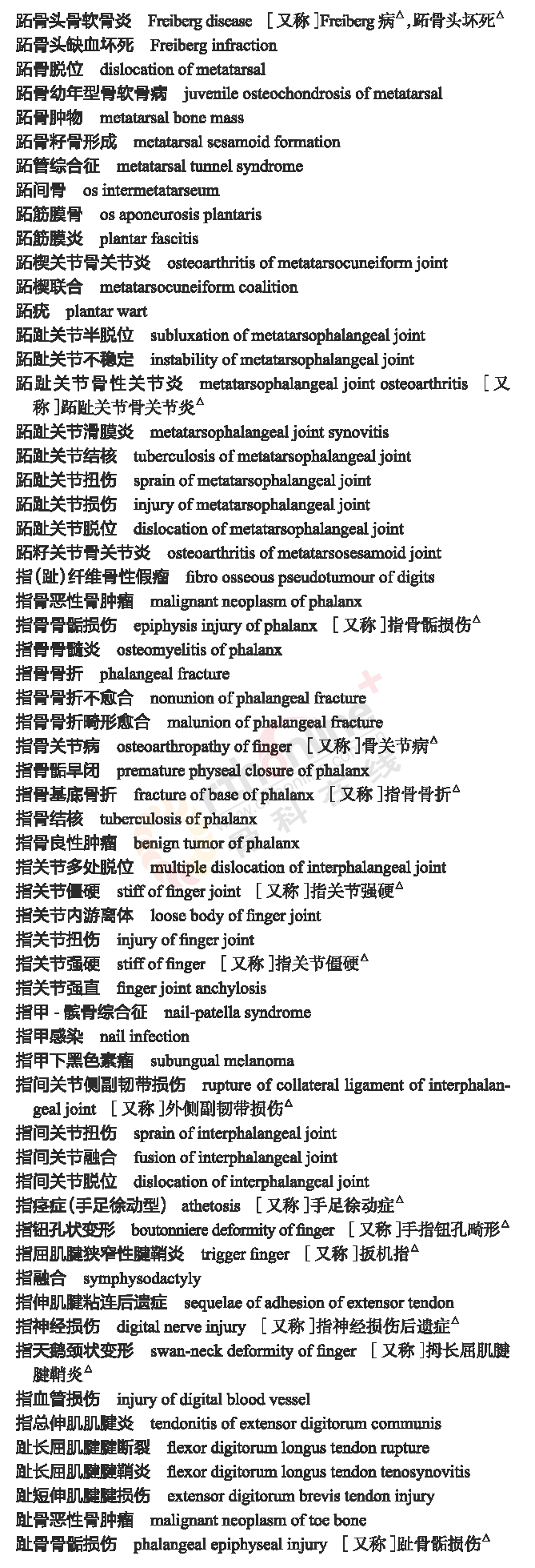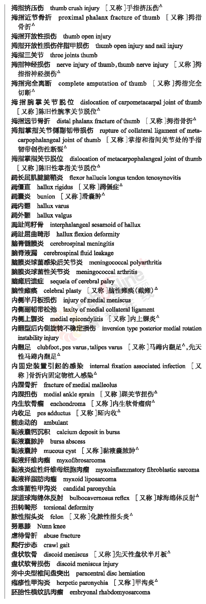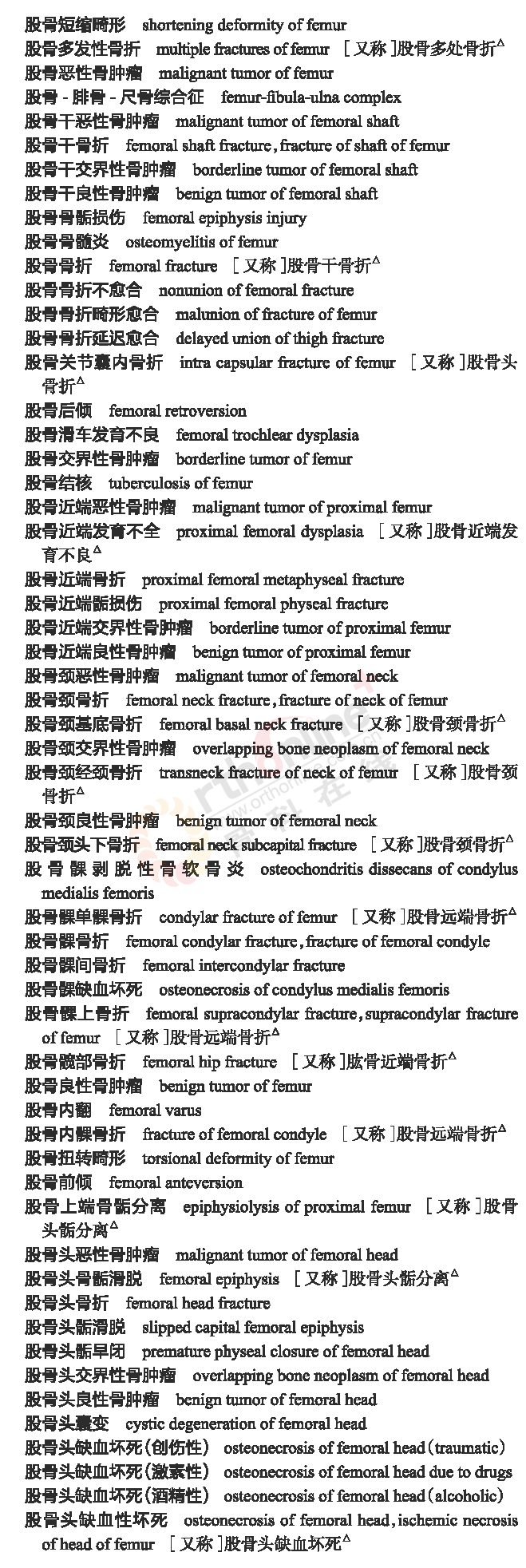 骨科常用临床医学名词