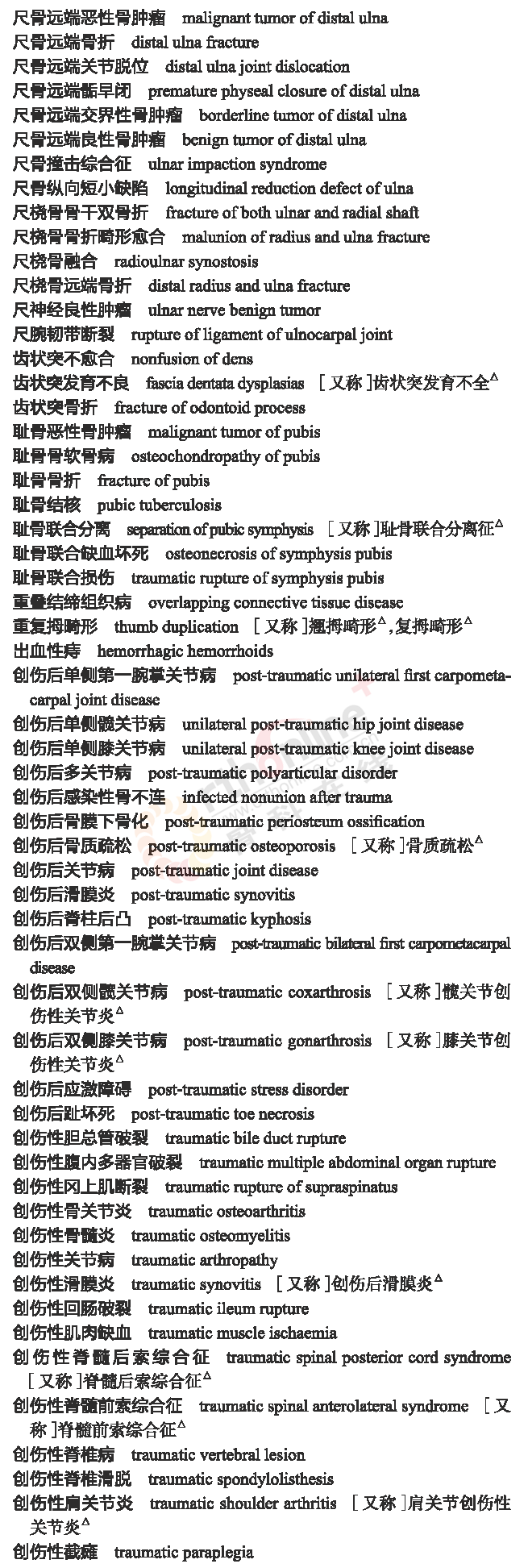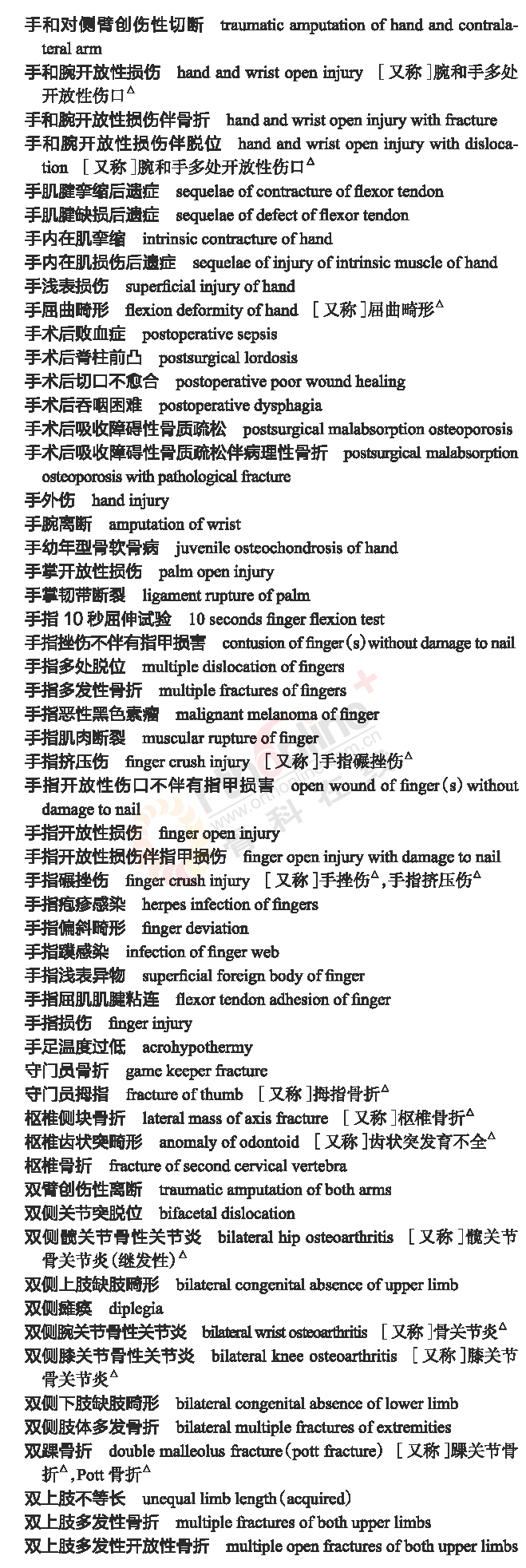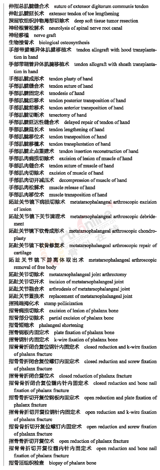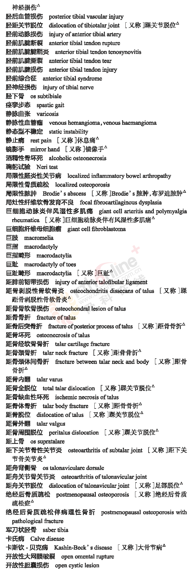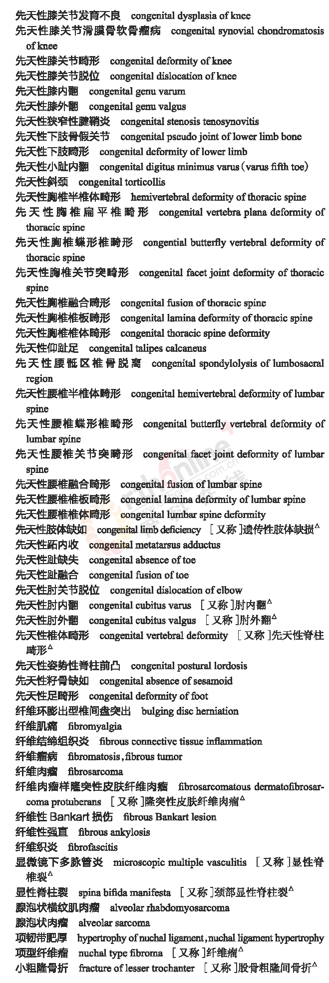 骨科常用临床医学名词