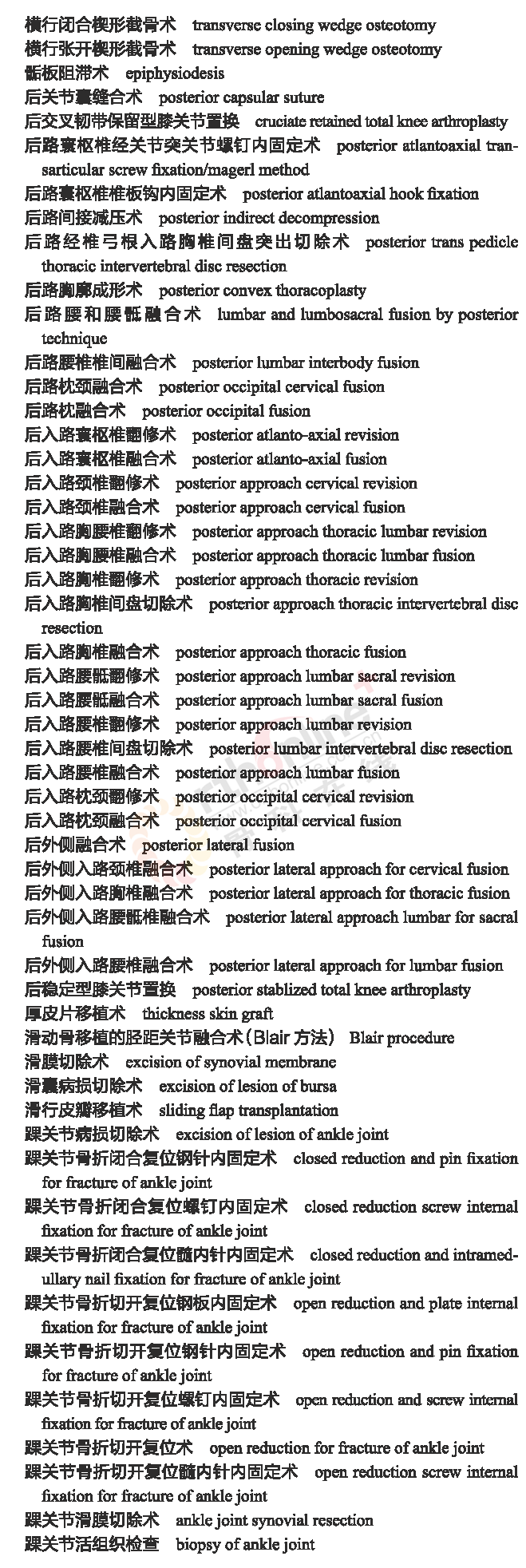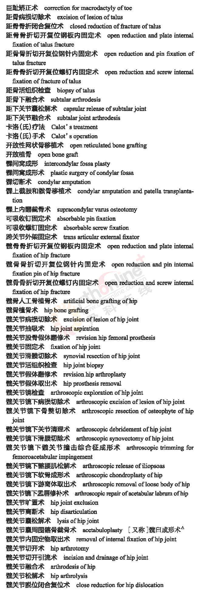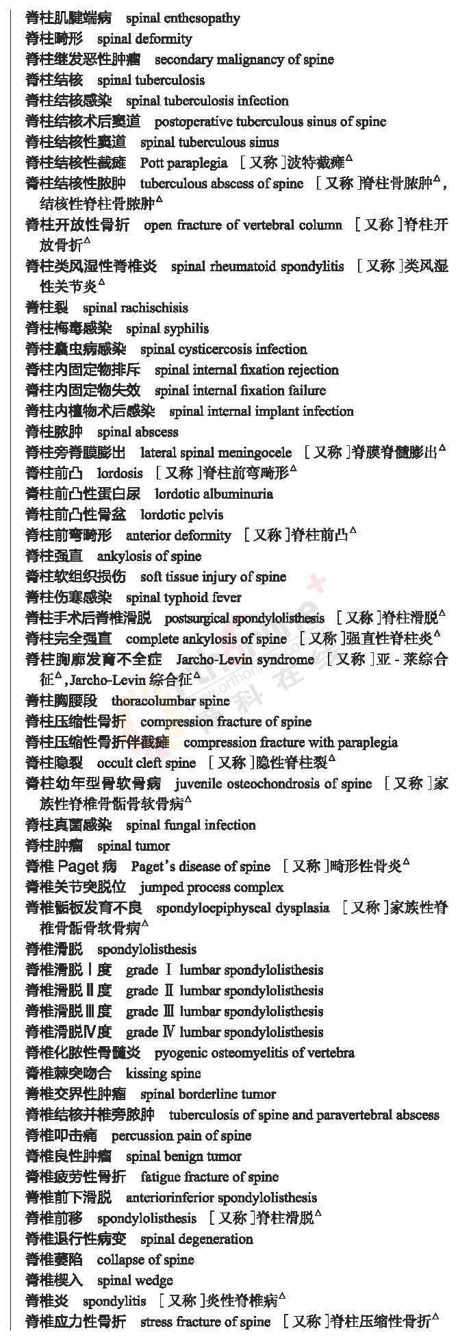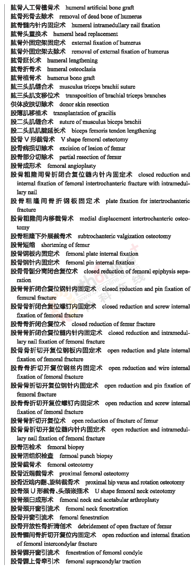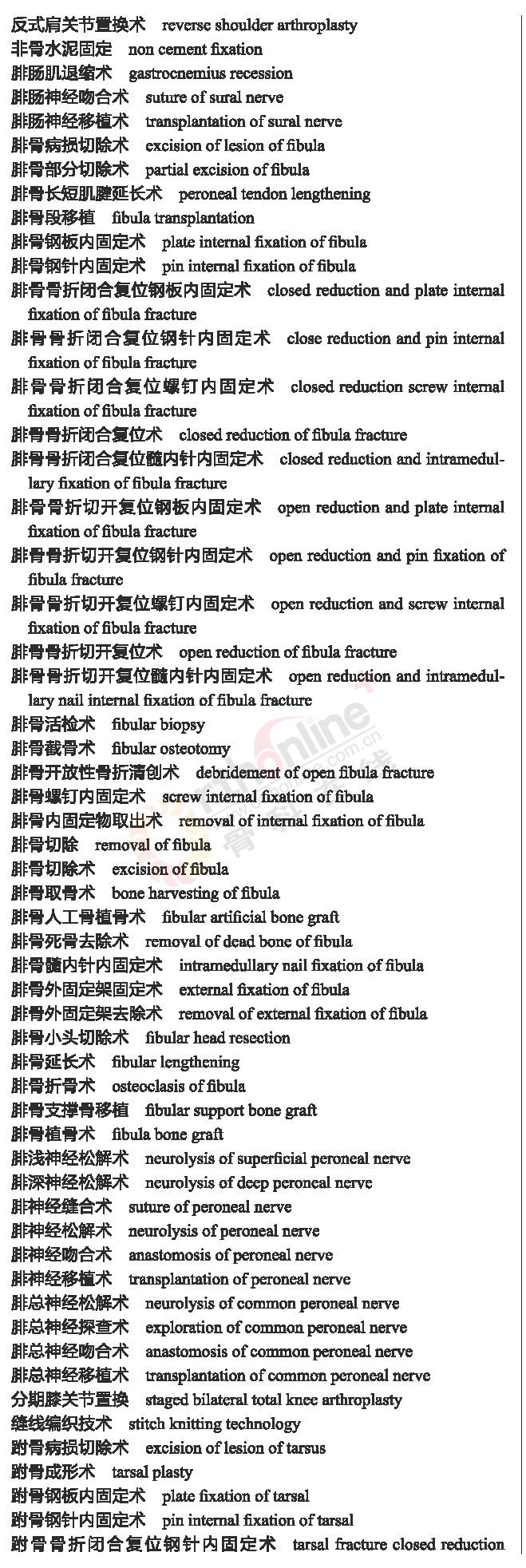 骨科常用临床医学名词