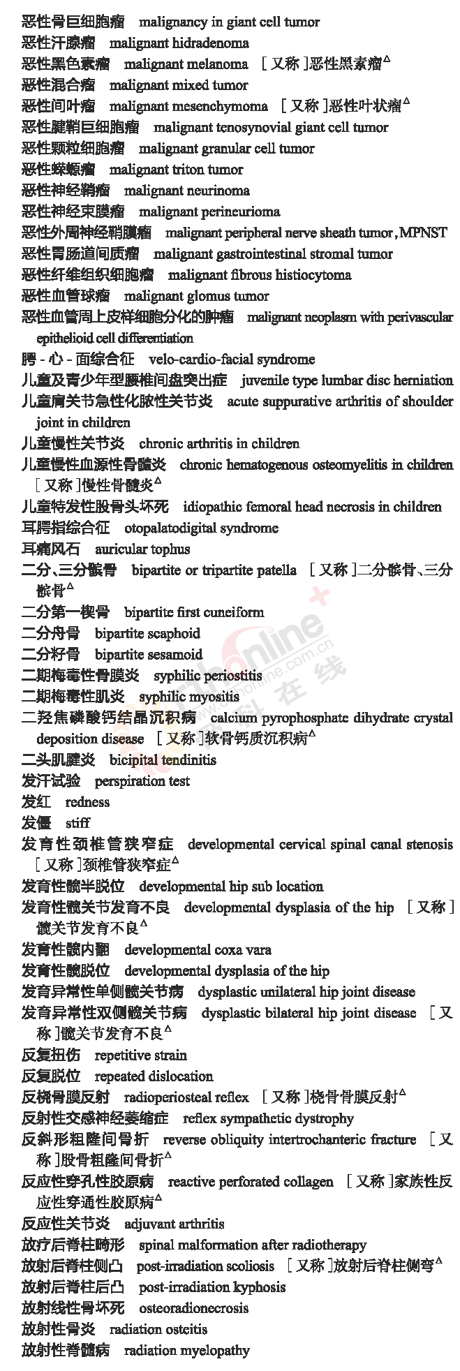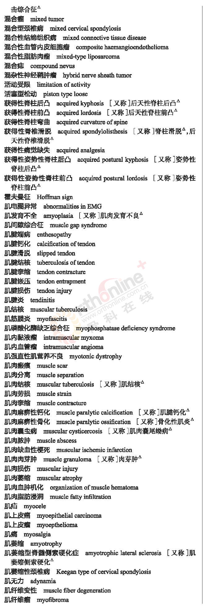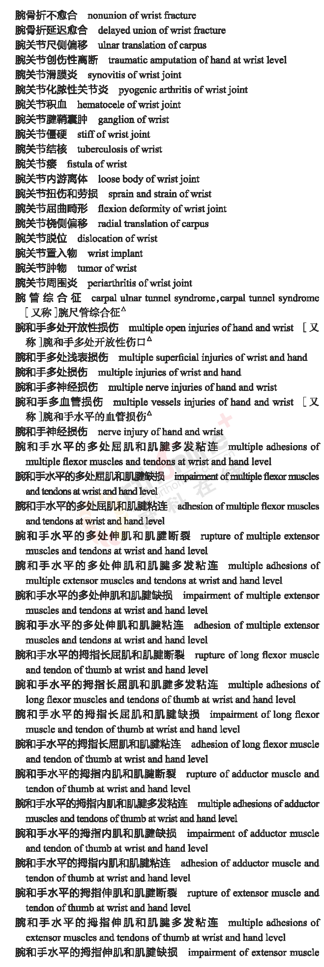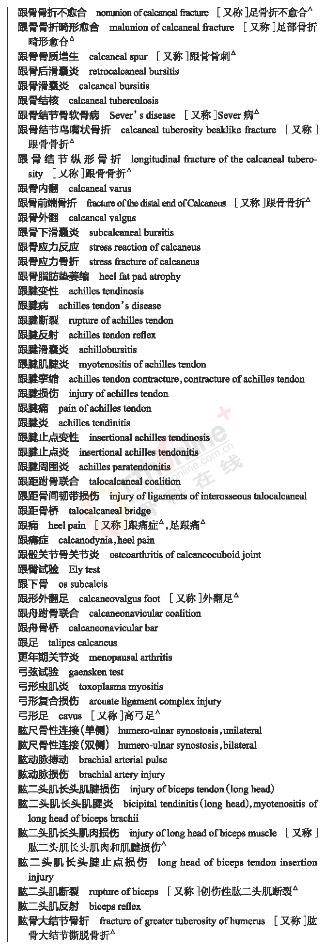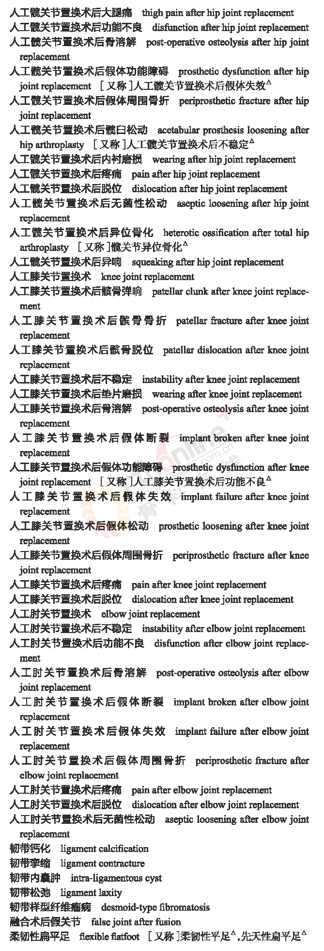 骨科常用临床医学名词