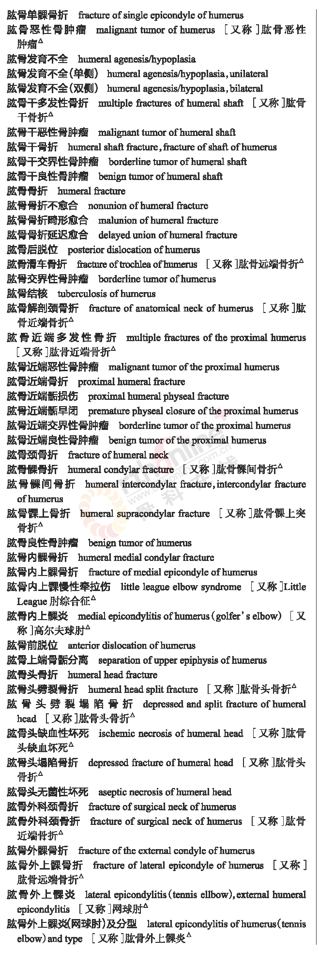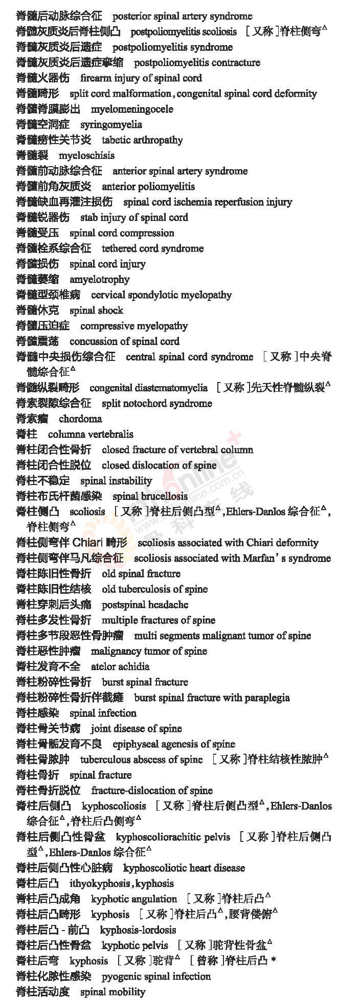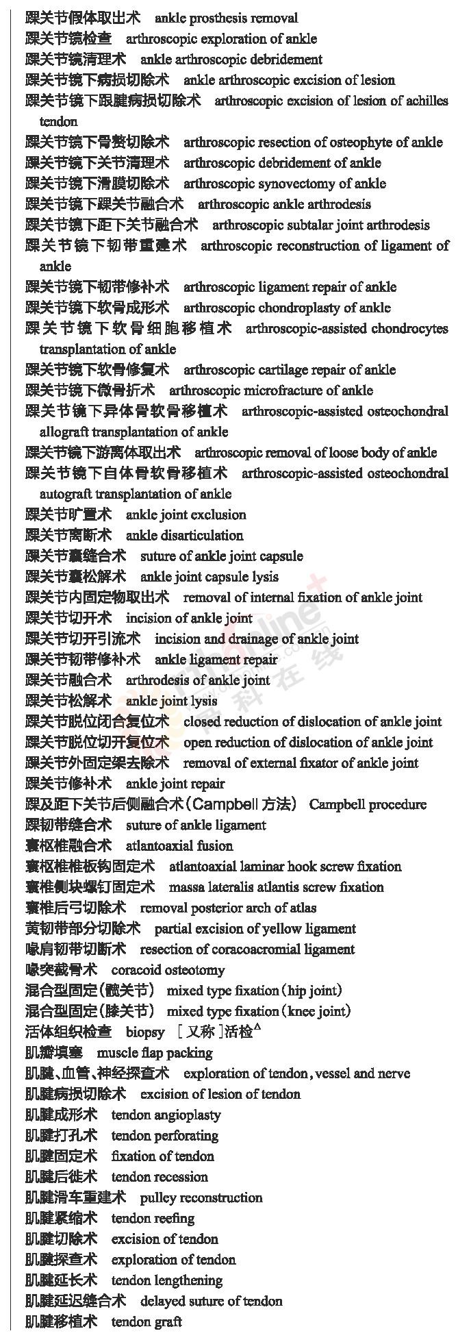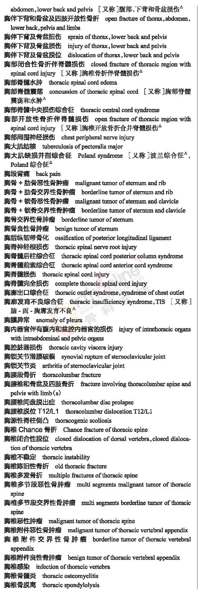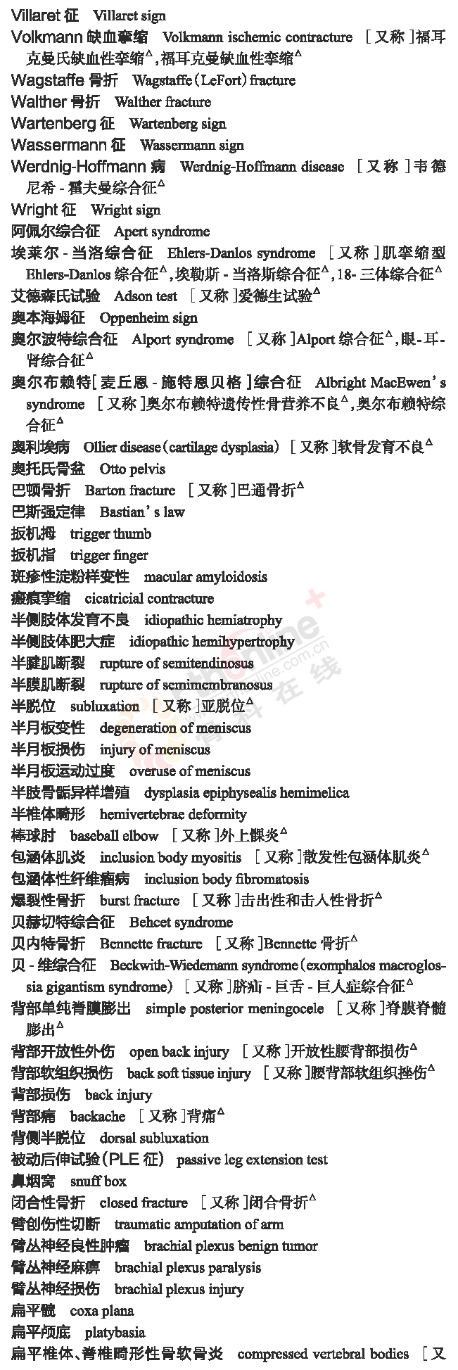 骨科常用临床医学名词