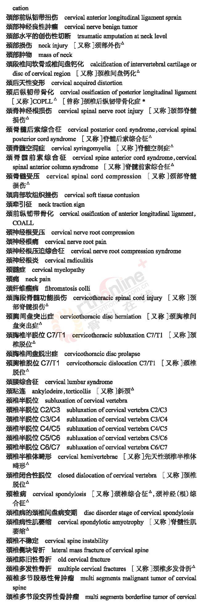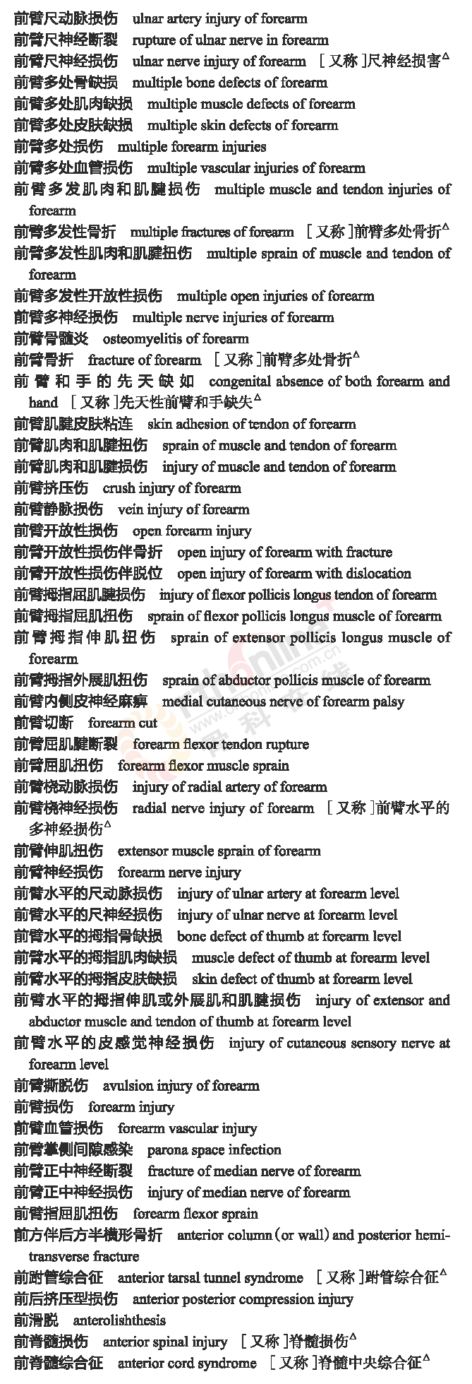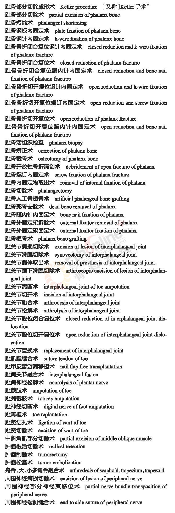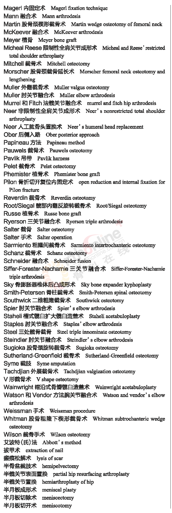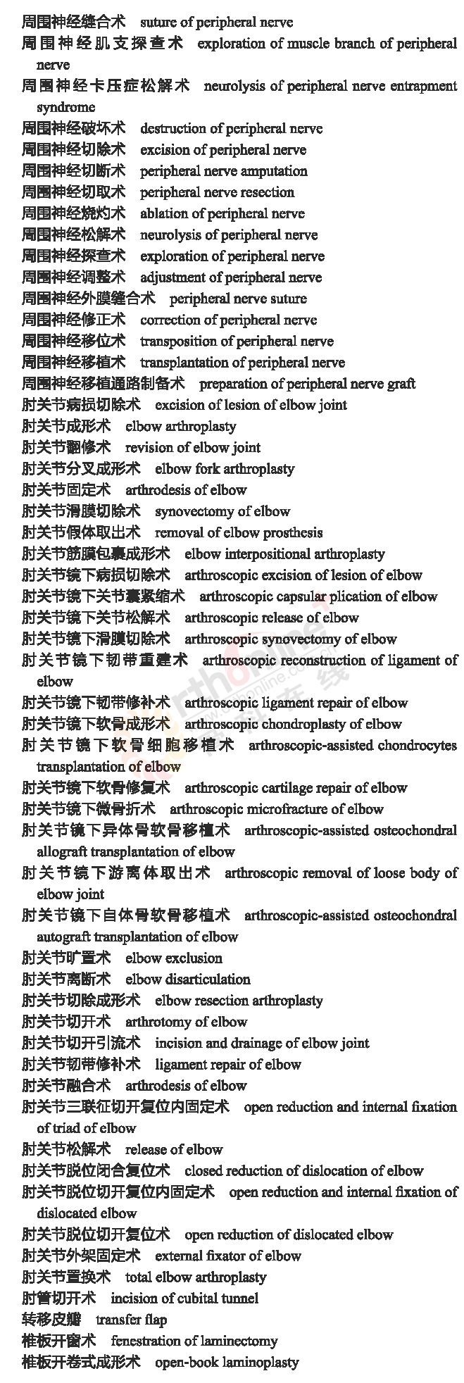 骨科常用临床医学名词