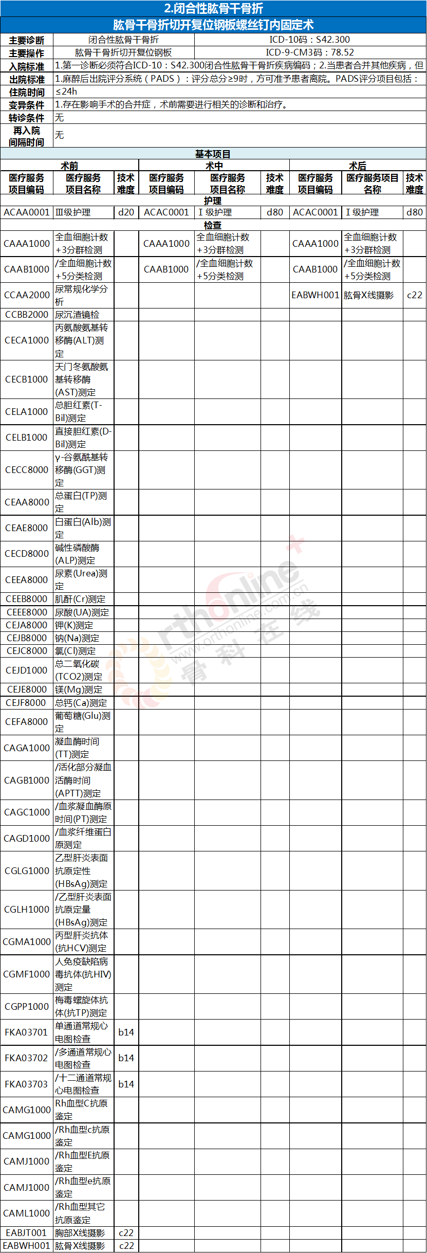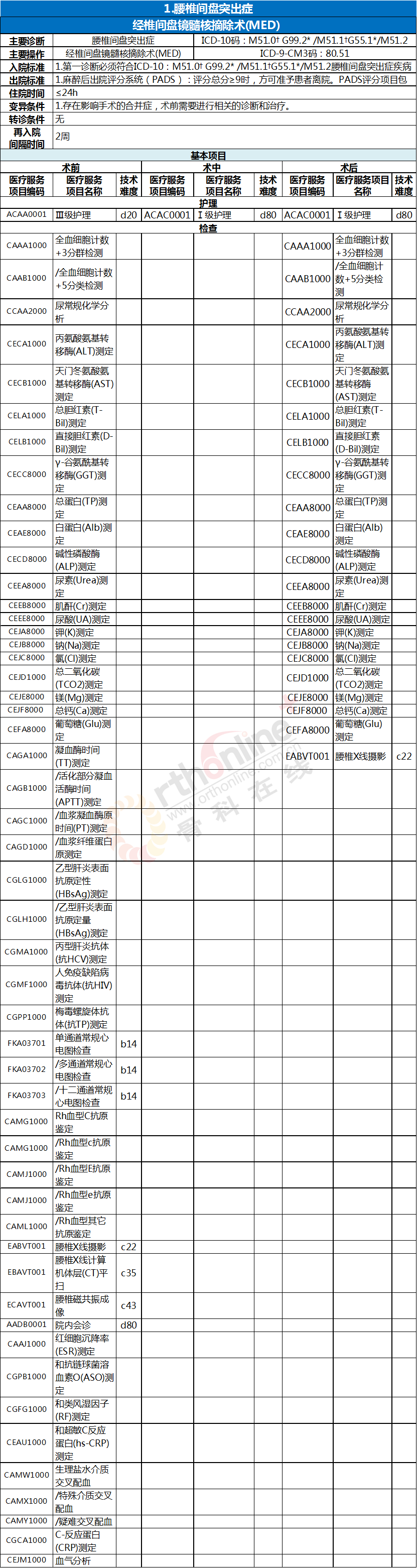 2020年1月13日,国家卫健委官网公布了《第一批日间手术病种手术操作规范(试行)》,在首批公布的43种疾病的操作规范中,包括骨科经椎间盘镜髓核摘除术(MED)、肱骨干骨折切开复位钢板螺丝钉内固定术、尺骨鹰嘴骨折切开复位内固定术、尺骨干骨折闭合复位钢板螺丝钉内固定术、肌肉松解术、腱鞘囊肿切除术、髌骨骨折闭合复位内固定术、腘窝囊肿切除术、关节镜下膝关节清理术、多指/趾切除矫形术。