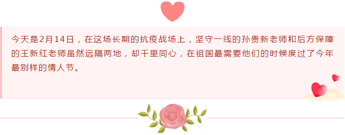 疫情爆发后,王老师坚定支持丈夫向医院积极请战,帮助他准备好驰援抗疫第一线的各方工作。